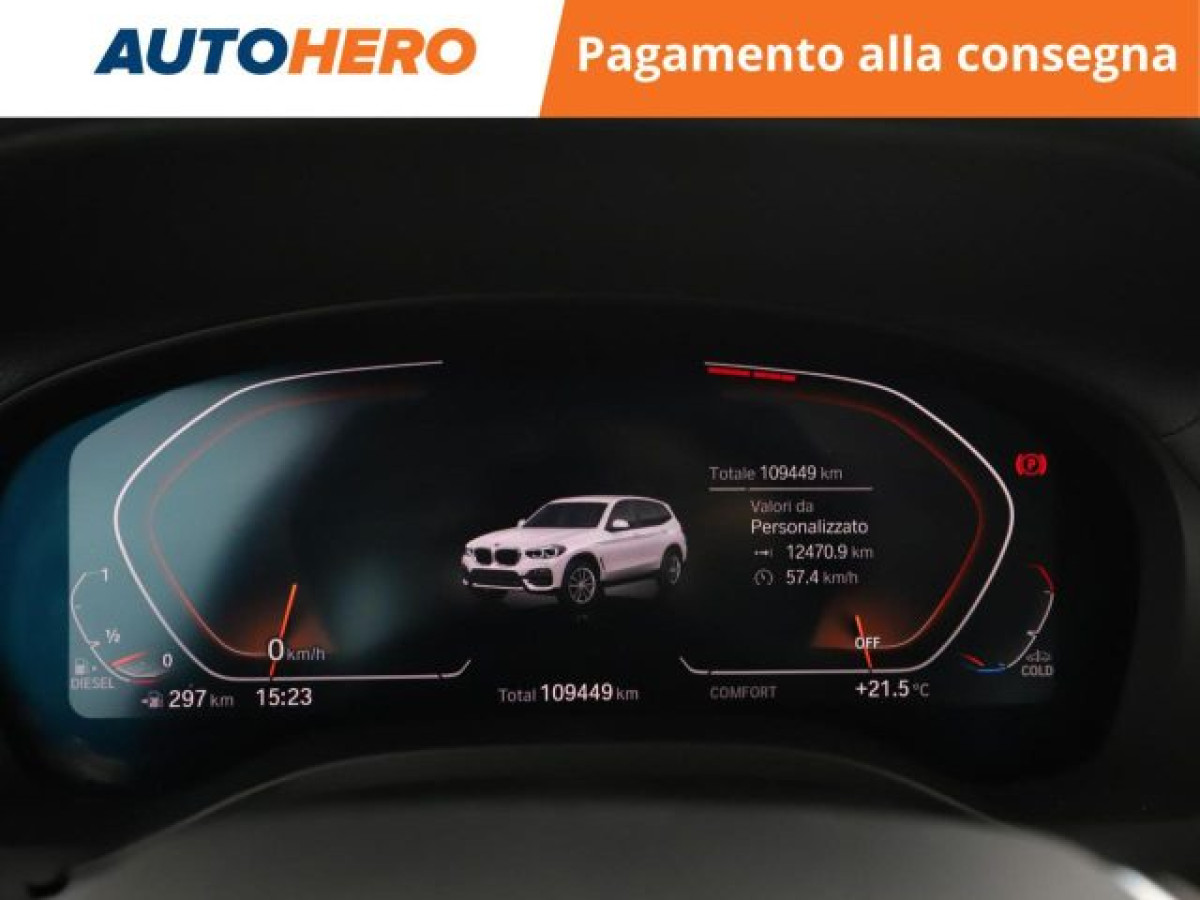 Cruise Control, Filtro antiparticolato, MP3, Bluetooth, Isofix, Start/Stop Automatico, Sensore di luce, Telecamera per parcheggio assistito, Vivavoce, Sensori di parcheggio anteriori, Sensori di parcheggio posteriori, Sensore di pioggia, Specchietti laterali elettrici, Sound system, Touch screen, USB, Controllo vocale, Portellone posteriore elettrico, Fari LED, Bracciolo, Luci diurne LED, Leve al volante, Airbag testa, Sedile posteriore sdoppiato, Climatizzatore automatico, 2 zone, Freno di stazionamento elettrico, Apple CarPlay, Android Auto, Schermo multifunzione interamente digita, Specchietto retrovisore con funzione ant. PAGAMENTO ALLA CONSEGNA, RESO GRATUITO E 1 ANNO DI GARANZIA: SOLO SU AUTOHERO! _________________________________________ SEMPRE INCLUSO: - Pagamento alla consegna, prima vedi poi paghi - Reso gratuito, avrai 21 giorni e 500 km per cambiare idea - Finanziamento flessibile**, personalizzabile senza vincoli - Standard di qualità, veicoli ricondizionati e sanificati - Semplicità nell\'acquisto, gestiamo noi tutte le pratiche - Acquisto sicuro, più di 1000 feedback positivi su Trustpilot - Garanzia 12 mesi inclusa, estendibile fino a 36 mesi _________________________________________ SALIAMO A BORDO! Tra le nostre BMW X3, questa si presenta nell allestimento xLine MHEVImmatricolata a novembre 2020, si presenta in perfette condizioni. L alimentazione Diesel è ancora la soluzione migliore per gli spostamenti più lunghi e per garantire maggiore vita al tuo motore, grazie anche al cambio automatico. Infine, la vita a bordo sarà più facile grazie a Chiusura centralizzata, e . Che aspetti? Visita il nostro sito per scoprire tutti i dettagli e la sua storia! _________________________________________ CONTATTACI SUBITO: - Telefonicamente al numero indicato nell\'annuncio - Tramite mail a clienti@autohero.com - Sul nostro sito www.autohero.com - Offerta N.AS95712 Annuncio completo: https://www.autohero.com/it/Link/id/1ae4773e-f4b9-4031-ab1a-bccabe25a39c/?utm_source=CLA&utm_medium=classifieds&utm_campaign=classifieds_IT.