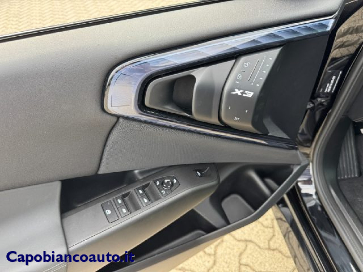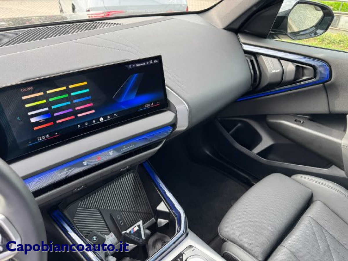 Gancio traino, Trazione integrale, Cruise Control, Bluetooth, Tetto panorama, Isofix, Head-up display, Sensore di luce, Telecamera per parcheggio assistito, Sensori di parcheggio anteriori, Sensori di parcheggio posteriori, Sensore di pioggia, Specchietti laterali elettrici, Pacchetto sportivo, Volante riscaldabile, Touch screen, Autoradio digitale, Portellone posteriore elettrico, Fari LED, Chiusura centralizzata senza chiave, Bracciolo, Adaptive Cruise Control, Leve al volante, Airbag testa, Vetri oscurati, Controllo elettronico della corsia, Frenata d\'emergenza assistita, Climatizzatore automatico, 3 zone, Sistema di parcheggio automatico, Luce d\'ambiente, Hotspot Wi-Fi, Apple CarPlay, Android Auto, Carica per smartphone a induzione, Schermo multifunzione interamente digita. BMW X3 2025 (G45) Motorizzazione 2.0 Xdrive 204CV Benzina/Mild Hybrid 48V Allestimento MSPORTVETTURA PRONTA CONSEGNA IN ARRIVO NELLA NOSTRA SEDE---IVA DEDUCIBILE---IMPORTO FINANZIABILE---GARANZIA UFFICIALE BMW ITALIA 01-2027---km 17.600-- Colore BLACK SAPPHIRE METALLIZZATO Interni MSPORT in \"VEGANZA\" BLACK Cerchi in lega da 19\" MSPORT TETTO PANORAMICO GANCIO DI TRAINO ELETTRICO VETRI POSTERIORI OSCURATI VOLANTE + SEDILI RISCALDABILI TELECAMERE 360° SEDILI ELETTRICI CON MEMORIA (conducente) INNOVATION PACK (telecamera interna+head up display+park assistant plus+bmw live cockpit PROFESSIONAL+DRIVE ASSISTANT PLUS) ADAPTIVE CRUISE CONTROL Accesso Comfort Key less Portellone vano bagagli con apertura elettrica Ricarica WIRELESS per SMARTHPHONE Luci interne \"AMBIENT\" multicolore APPLE CAR PLAY/ANDROID AUTO FARI FULL LED N.B. La dotazione tecnica, gli optional e gli allestimenti indicati nelle schede tecniche dei veicoli potrebbero in alcuni casi differire dall\'effettivo equipaggiamento della vettura disponibile, a causa della non uniformità dei dati pubblicati dai vari portali e da eventuali errate trascrizioni del sistema informatico gestionale auto dovute agli aggiornamenti frequenti del database. Ci scusiamo anticipatamente per l\'inconveniente e Vi invitiamo a verificare con i nostri consulenti alla vendita i dettagli dello specifico veicolo. C.G. Car S.r.l. declina ogni responsabilità per eventuali involontarie incongruenze, che non rappresentano un impegno contrattuale..