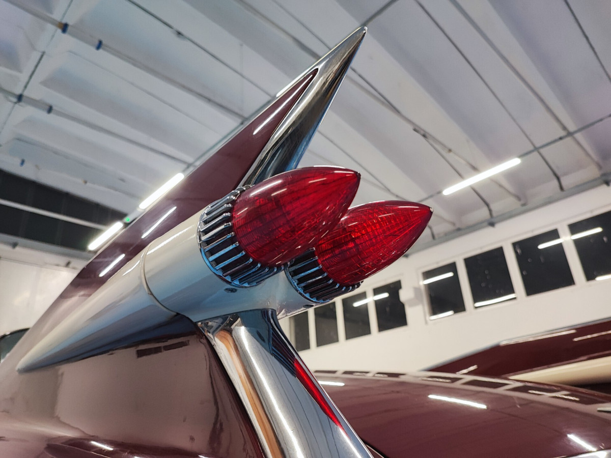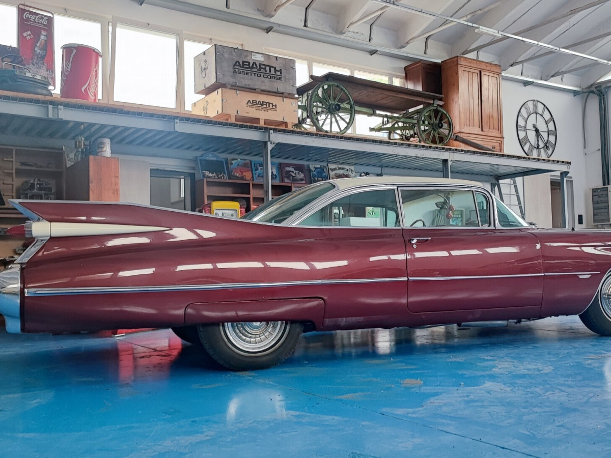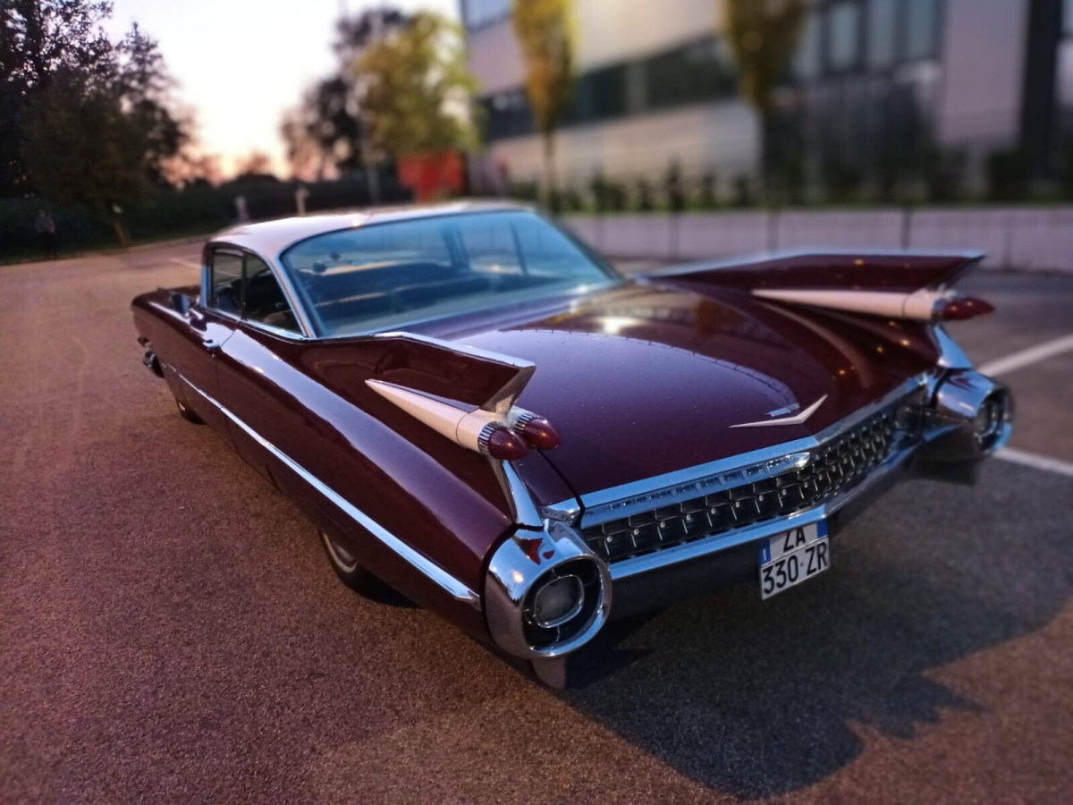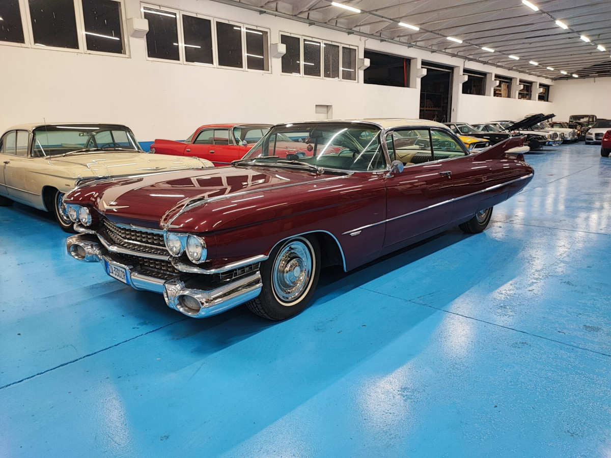 Cadillac Coupé De Ville del 1959 in buone condizioni generali. Le Cadillac del 1959 sono ricordate per le loro enormi ed affilate pinne posteriori, con luci posteriori integrate e a forma di doppio proiettile. Monta motore 390 con 330cv. Regolarmente immatricolata in Italia con documenti da passaggio. La macchina verrà consegnata tagliandata e revisionata. NO PERMUTE O SCAMBI! Prezzo poco trattabile dopo visione