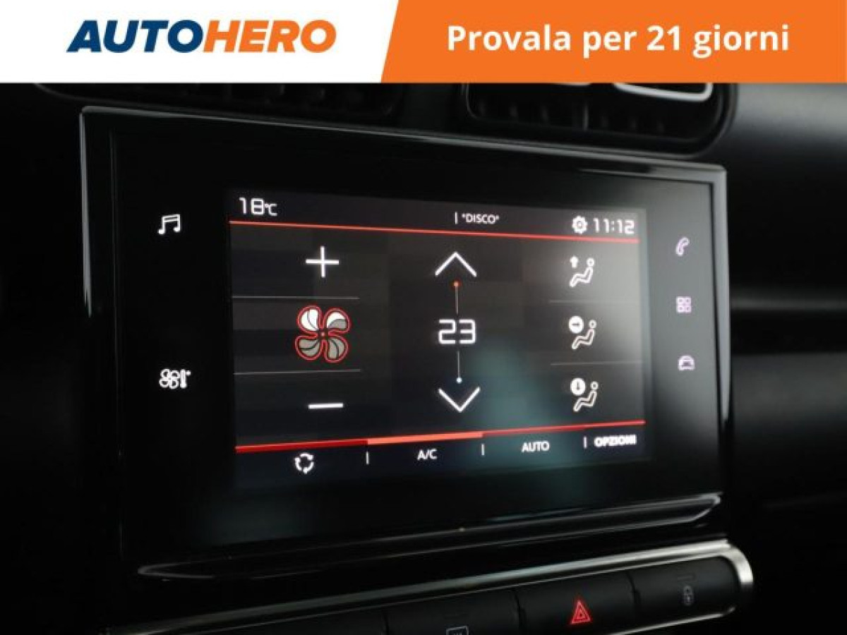 Cruise Control, Bluetooth, Isofix, Sensore di luce, Sensori di parcheggio posteriori, Specchietti laterali elettrici, Airbag testa, Riconoscimento dei segnali stradali, Sedile posteriore sdoppiato, Vetri oscurati, Controllo elettronico della corsia, Apple CarPlay, Android Auto. PAGAMENTO ALLA CONSEGNA, RESO GRATUITO E 1 ANNO DI GARANZIA: SOLO SU AUTOHERO! _________________________________________ SEMPRE INCLUSO: - Pagamento alla consegna, prima vedi poi paghi - Reso gratuito, avrai 21 giorni e 500 km per cambiare idea - Finanziamento flessibile**, personalizzabile senza vincoli - Standard di qualità, veicoli ricondizionati e sanificati - Semplicità nell\'acquisto, gestiamo noi tutte le pratiche - Acquisto sicuro, più di 1000 feedback positivi su Trustpilot - Garanzia 12 mesi inclusa, estendibile fino a 36 mesi _________________________________________ SALIAMO A BORDO! Tra le nostre Citroen C3 Aircross, questa si presenta nell allestimento Feel 110 CVImmatricolata a settembre 2019, si presenta in perfette condizioni. L alimentazione Benzina sarà l ideale per muoversi sia in città che su percorsi più lunghi, senza limitazioni alla circolazione. Infine, la vita a bordo sarà più facile grazie a Chiusura centralizzata, e . Che aspetti? Visita il nostro sito per scoprire tutti i dettagli e la sua storia! _________________________________________ CONTATTACI SUBITO: - Telefonicamente al numero indicato nell\'annuncio - Tramite mail a clienti@autohero.com - Sul nostro sito www.autohero.com - Offerta N.NX01432 Annuncio completo: https://www.autohero.com/it/Link/id/88c5d781-c624-4c32-a9d5-e844f1fd6a90/?utm_source=CLA&utm_medium=classifieds&utm_campaign=classifieds_IT.