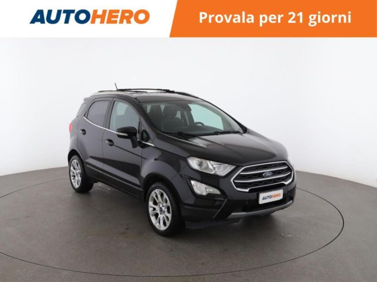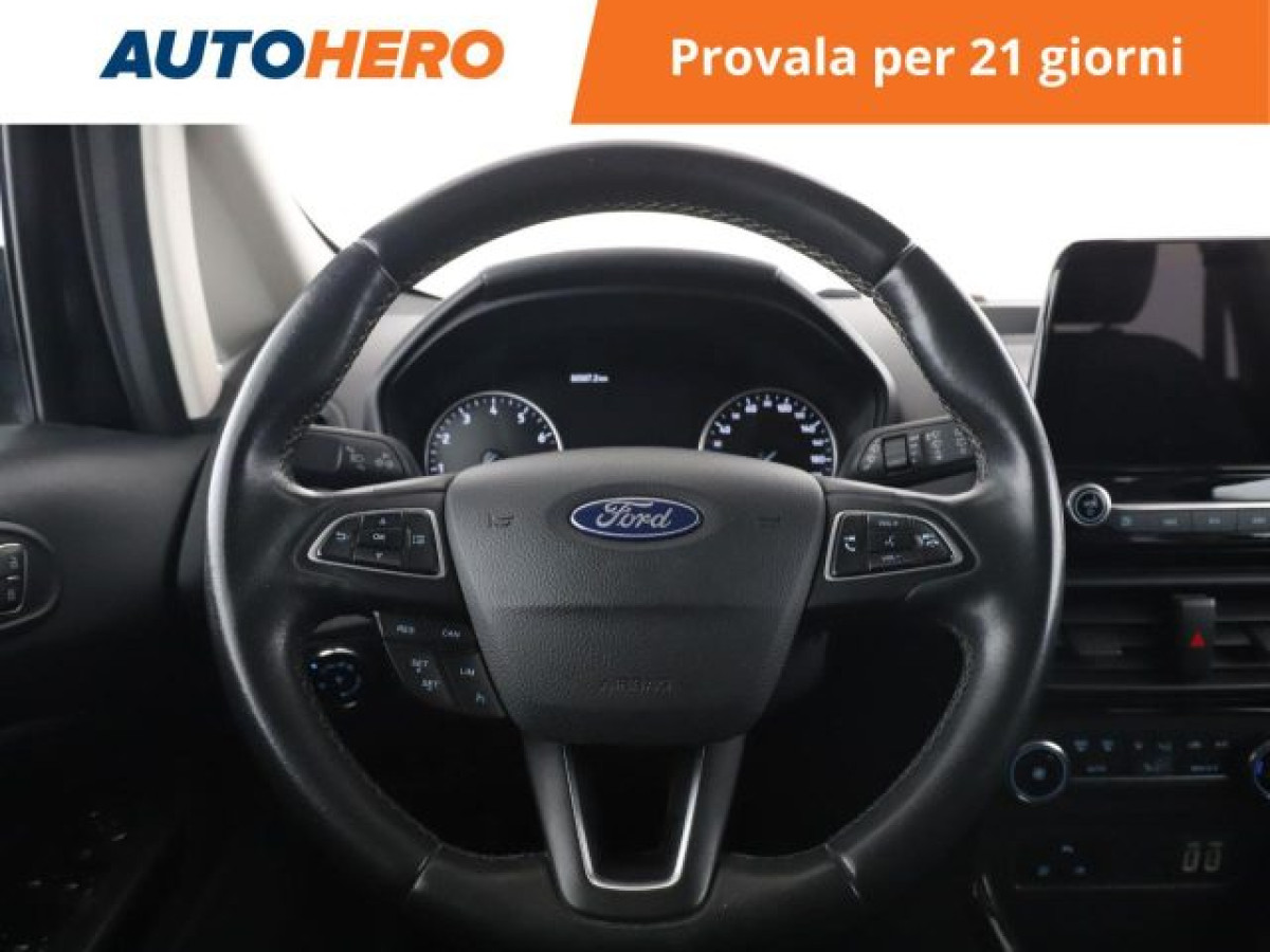 Vetri oscurati, Specchietto retrovisore con funzione ant, MP3, Luci diurne, Start/Stop Automatico, Telecamera per parcheggio assistito, Airbag testa, Sedile posteriore sdoppiato, Climatizzatore automatico, 2 zone, Android Auto, Cruise Control, Bluetooth, Vivavoce, Isofix, USB, Controllo vocale, Sensori di parcheggio anteriori, Sensori di parcheggio posteriori, Specchietti laterali elettrici, Bracciolo, Apple CarPlay. PAGAMENTO ALLA CONSEGNA, RESO GRATUITO E 1 ANNO DI GARANZIA: SOLO SU AUTOHERO! _________________________________________ SEMPRE INCLUSO: - Pagamento alla consegna, prima vedi poi paghi - Reso gratuito, avrai 21 giorni e 500 km per cambiare idea - Finanziamento flessibile**, personalizzabile senza vincoli - Standard di qualità, veicoli ricondizionati e sanificati - Semplicità nell\'acquisto, gestiamo noi tutte le pratiche - Acquisto sicuro, più di 1000 feedback positivi su Trustpilot - Garanzia 12 mesi inclusa, estendibile fino a 36 mesi _________________________________________ SALIAMO A BORDO! Tra le nostre Ford EcoSport, questa si presenta nell allestimento Titanium 125 CVImmatricolata a settembre 2020, si presenta in perfette condizioni. L alimentazione Benzina sarà l ideale per muoversi sia in città che su percorsi più lunghi, senza limitazioni alla circolazione. Infine, la vita a bordo sarà più facile grazie a Chiusura centralizzata, e . Che aspetti? Visita il nostro sito per scoprire tutti i dettagli e la sua storia! _________________________________________ CONTATTACI SUBITO: - Telefonicamente al numero indicato nell\'annuncio - Tramite mail a clienti@autohero.com - Sul nostro sito www.autohero.com - Offerta N.SS47050 Annuncio completo: https://www.autohero.com/it/Link/id/fba2cb85-34ca-4922-bab6-ea9d49f2b64a/?utm_source=CLA&utm_medium=classifieds&utm_campaign=classifieds_IT.