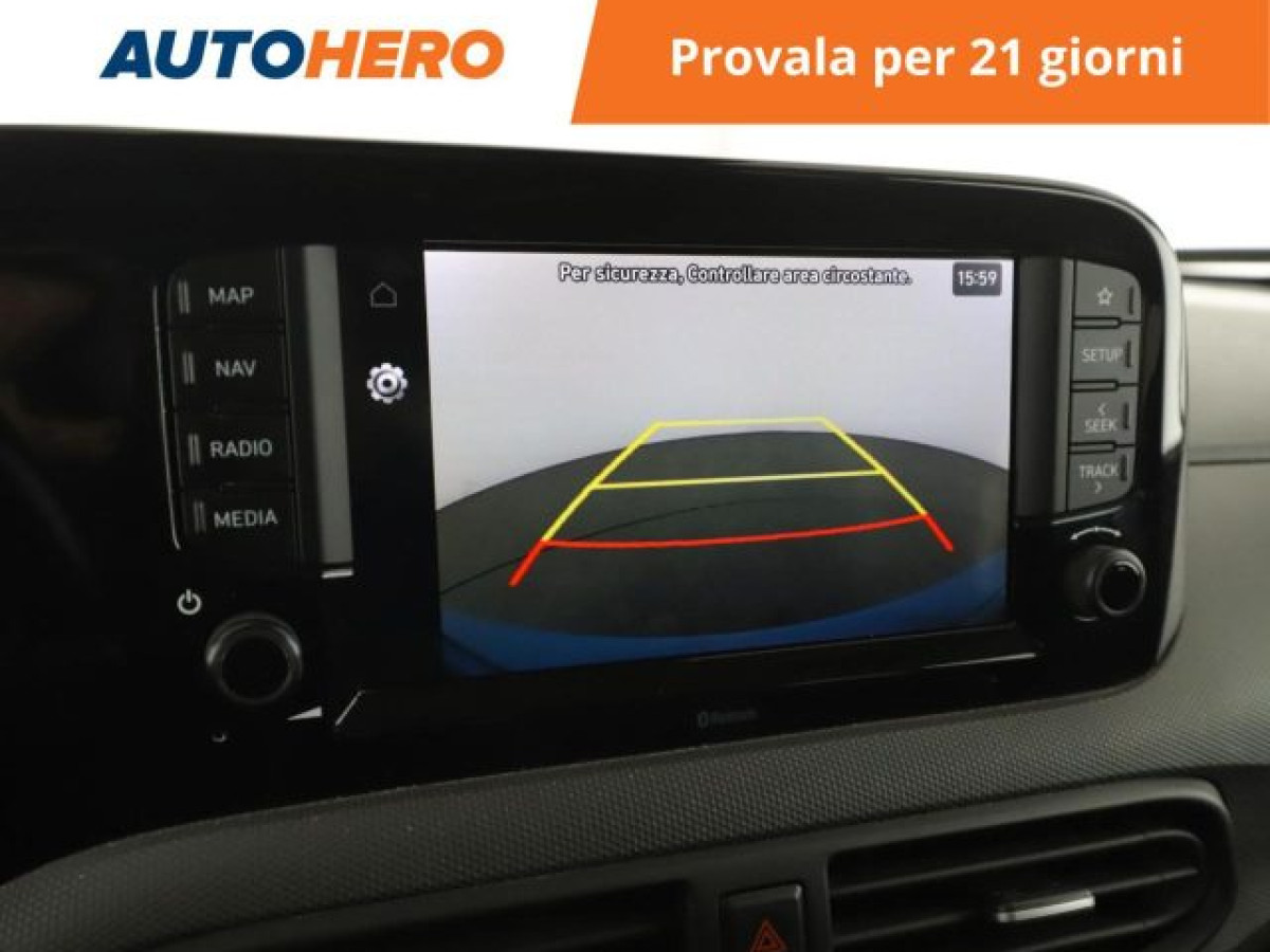 Cruise Control, Bluetooth, Isofix, Start/Stop Automatico, Sensore di luce, Telecamera per parcheggio assistito, Sensori di parcheggio posteriori, Specchietti laterali elettrici, Airbag testa, Riconoscimento dei segnali stradali, Sedile posteriore sdoppiato, Vetri oscurati, Controllo elettronico della corsia, Apple CarPlay, Android Auto. PAGAMENTO ALLA CONSEGNA, RESO GRATUITO E 1 ANNO DI GARANZIA: SOLO SU AUTOHERO! _________________________________________ SEMPRE INCLUSO: - Pagamento alla consegna, prima vedi poi paghi - Reso gratuito, avrai 21 giorni e 500 km per cambiare idea - Finanziamento flessibile**, personalizzabile senza vincoli - Standard di qualità, veicoli ricondizionati e sanificati - Semplicità nell\'acquisto, gestiamo noi tutte le pratiche - Acquisto sicuro, più di 1000 feedback positivi su Trustpilot - Garanzia 12 mesi inclusa, estendibile fino a 36 mesi _________________________________________ SALIAMO A BORDO! Tra le nostre Hyundai i10, questa si presenta nell allestimento Prime che coi suoi numerosi optional migliorerà la tua esperienza di guida, accompagnandoti a destinazione in tutta serenità. Immatricolata a luglio 2020, si presenta in perfette condizioni. L alimentazione Benzina sarà l ideale per muoversi sia in città che su percorsi più lunghi, senza limitazioni alla circolazione. Infine, la vita a bordo sarà più facile grazie a Chiusura centralizzata, e . Che aspetti? Visita il nostro sito per scoprire tutti i dettagli e la sua storia! _________________________________________ CONTATTACI SUBITO: - Telefonicamente al numero indicato nell\'annuncio - Tramite mail a clienti@autohero.com - Sul nostro sito www.autohero.com - Offerta N.VP27810 Annuncio completo: https://www.autohero.com/it/Link/id/48de76b5-6a5e-45d3-b3da-27c2e286b709/?utm_source=CLA&utm_medium=classifieds&utm_campaign=classifieds_IT.