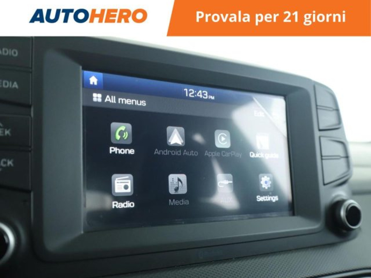 Cruise Control, Bluetooth, Isofix, Start/Stop Automatico, Telecamera per parcheggio assistito, Sensore di luce, Sensori di parcheggio posteriori, Specchietti laterali elettrici, Bracciolo, Airbag testa, Sedile posteriore sdoppiato, Controllo elettronico della corsia, Apple CarPlay, Android Auto. PAGAMENTO ALLA CONSEGNA, RESO GRATUITO E 1 ANNO DI GARANZIA: SOLO SU AUTOHERO! _________________________________________ SEMPRE INCLUSO: - Pagamento alla consegna, prima vedi poi paghi - Reso gratuito, avrai 21 giorni e 500 km per cambiare idea - Finanziamento flessibile**, personalizzabile senza vincoli - Standard di qualità, veicoli ricondizionati e sanificati - Semplicità nell\'acquisto, gestiamo noi tutte le pratiche - Acquisto sicuro, più di 1000 feedback positivi su Trustpilot - Garanzia 12 mesi inclusa, estendibile fino a 36 mesi _________________________________________ SALIAMO A BORDO! Tra le nostre Hyundai Kona, questa si presenta nell allestimento XTech 115 CVImmatricolata a dicembre 2019, si presenta in perfette condizioni. L alimentazione Diesel è ancora la soluzione migliore per gli spostamenti più lunghi e per garantire maggiore vita al tuo motore. Infine, la vita a bordo sarà più facile grazie a Chiusura centralizzata, e . Che aspetti? Visita il nostro sito per scoprire tutti i dettagli e la sua storia! _________________________________________ CONTATTACI SUBITO: - Telefonicamente al numero indicato nell\'annuncio - Tramite mail a clienti@autohero.com - Sul nostro sito www.autohero.com - Offerta N.XH62587 Annuncio completo: https://www.autohero.com/it/Link/id/ff6a6c0b-5590-4ec9-b5a6-f539db29702b/?utm_source=CLA&utm_medium=classifieds&utm_campaign=classifieds_IT.