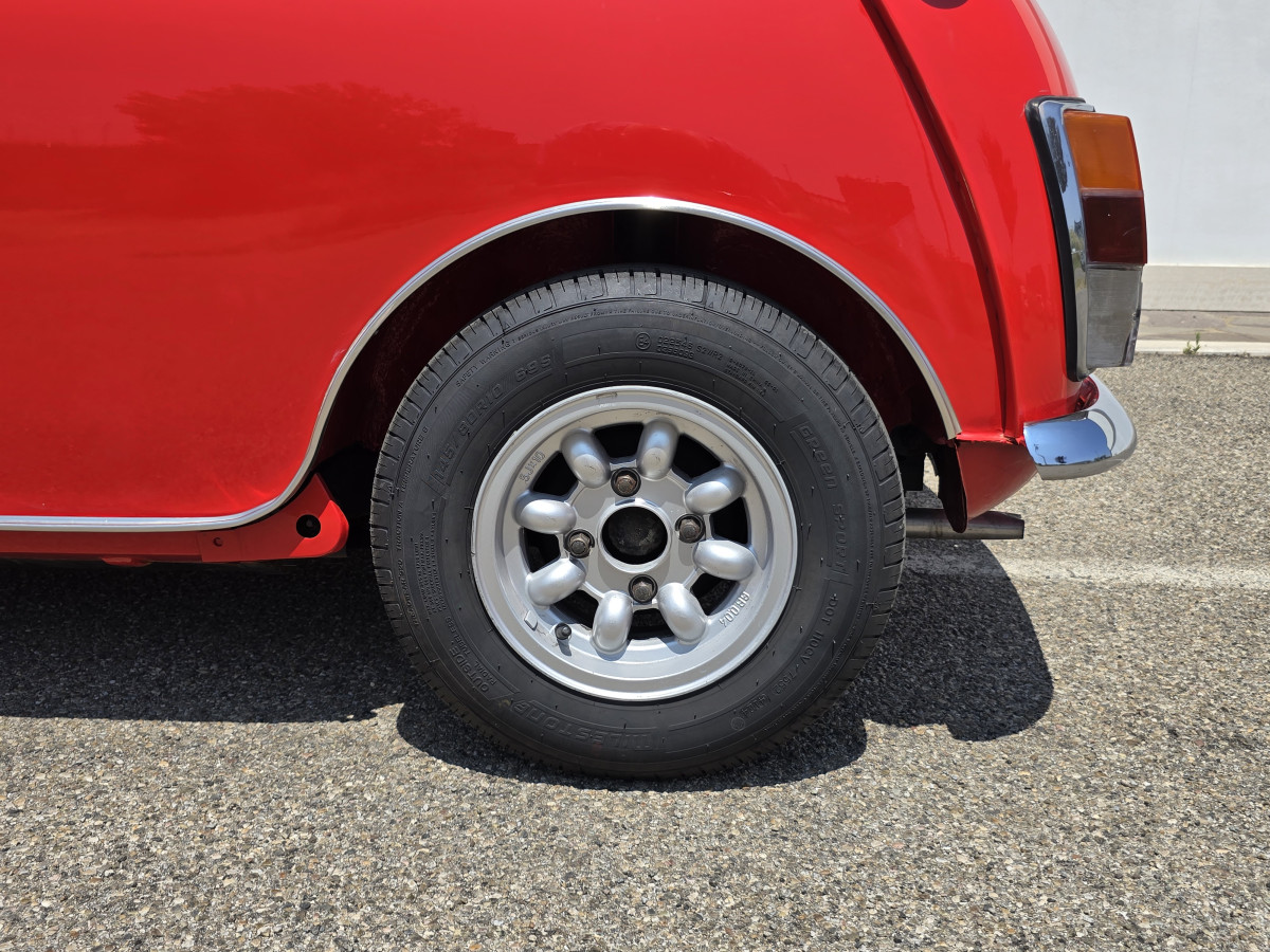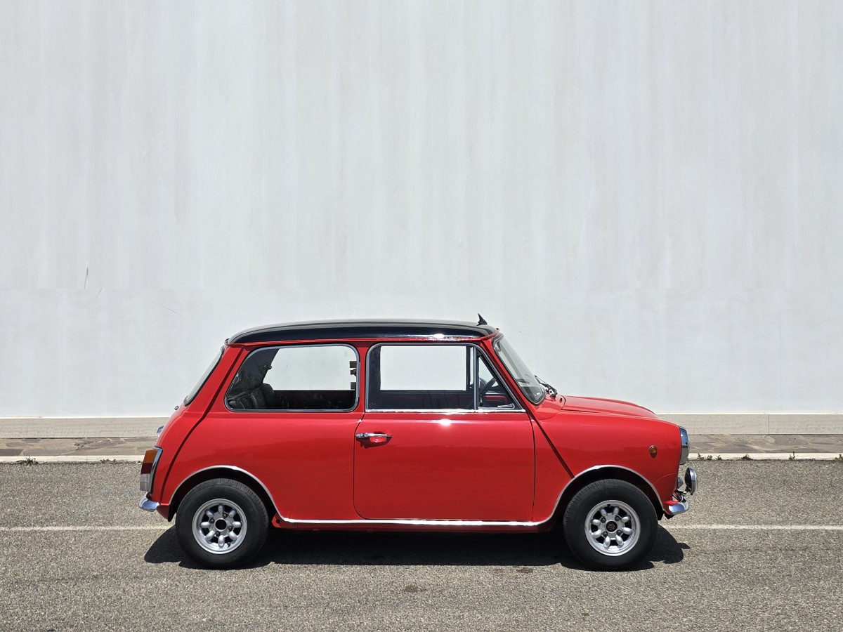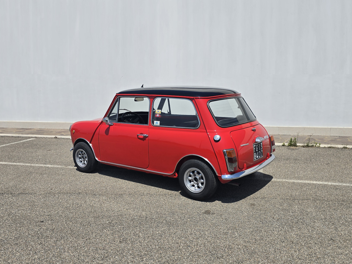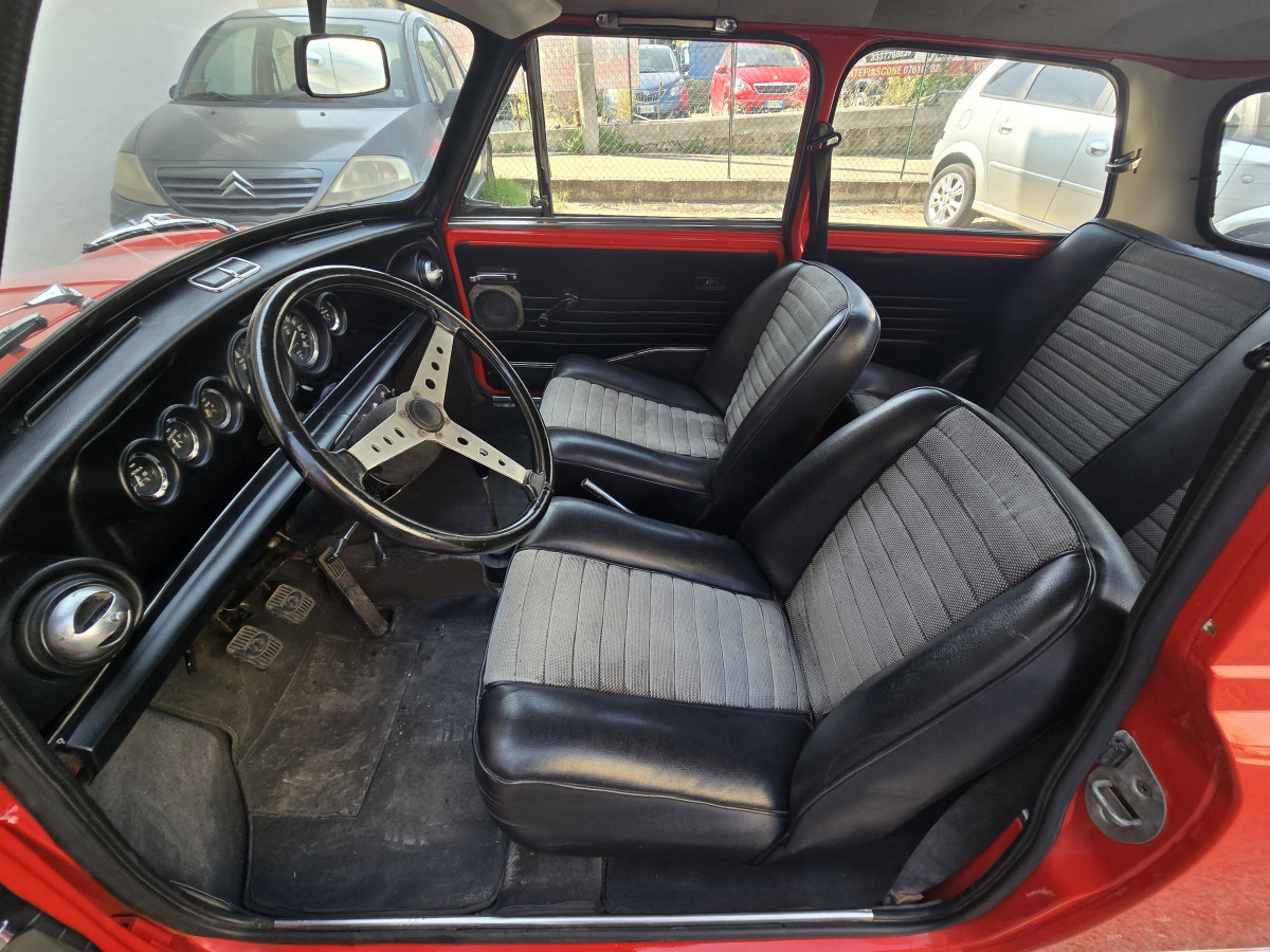 Innocenti Mini Cooper 1300 Pre-Export 1973 Autovettura con restauro conservativo effettuato nel 2016,motore e cambio Km.zero,omologata ASI Targa Oro.,colore rosso con tettino nero,interni in Ski nero e tessuto grigio,Km.totali 95.000 ma con motore e cambio completamente rifatti e con meno di 200 km(duecento)dal rifacimento. Revisionata a Giugno 2025,gomme nuove km.0