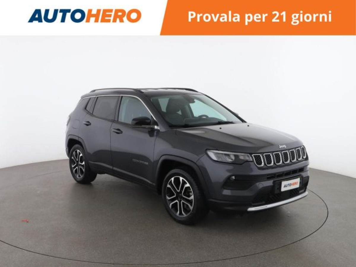 Isofix, Start/Stop Automatico, Apple CarPlay, Telecamera per parcheggio assistito, Sensori di parcheggio posteriori, Bluetooth, Sensori di parcheggio anteriori, Riconoscimento dei segnali stradali, Specchietti laterali elettrici, Fari LED, Chiusura centralizzata senza chiave, Bracciolo, Adaptive Cruise Control, Luci diurne LED, Airbag testa, Vetri oscurati, Controllo elettronico della corsia, Frenata d\'emergenza assistita, Freno di stazionamento elettrico, Sistema di parcheggio automatico, Sedile posteriore sdoppiato, Android Auto, Schermo multifunzione interamente digita. PAGAMENTO ALLA CONSEGNA, RESO GRATUITO E 1 ANNO DI GARANZIA: SOLO SU AUTOHERO! _________________________________________ SEMPRE INCLUSO: - Pagamento alla consegna, prima vedi poi paghi - Reso gratuito, avrai 21 giorni e 500 km per cambiare idea - Finanziamento flessibile**, personalizzabile senza vincoli - Standard di qualità, veicoli ricondizionati e sanificati - Semplicità nell\'acquisto, gestiamo noi tutte le pratiche - Acquisto sicuro, più di 1000 feedback positivi su Trustpilot - Garanzia 12 mesi inclusa, estendibile fino a 36 mesi _________________________________________ SALIAMO A BORDO! Tra le nostre Jeep Compass, questa si presenta nell allestimento Limited 150 CV autImmatricolata a luglio 2021, si presenta in perfette condizioni. L alimentazione Benzina sarà l ideale per muoversi sia in città che su percorsi più lunghi, senza limitazioni alla circolazione, grazie anche al cambio automatico. Infine, la vita a bordo sarà più facile grazie a Chiusura centralizzata, e . Che aspetti? Visita il nostro sito per scoprire tutti i dettagli e la sua storia! _________________________________________ CONTATTACI SUBITO: - Telefonicamente al numero indicato nell\'annuncio - Tramite mail a clienti@autohero.com - Sul nostro sito www.autohero.com - Offerta N.ER58829 Annuncio completo: https://www.autohero.com/it/Link/id/8fd0c7fa-64c9-4680-aaa1-0d44858a1d9f/?utm_source=CLA&utm_medium=classifieds&utm_campaign=classifieds_IT.