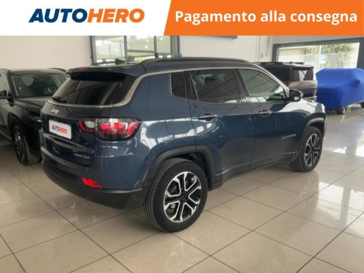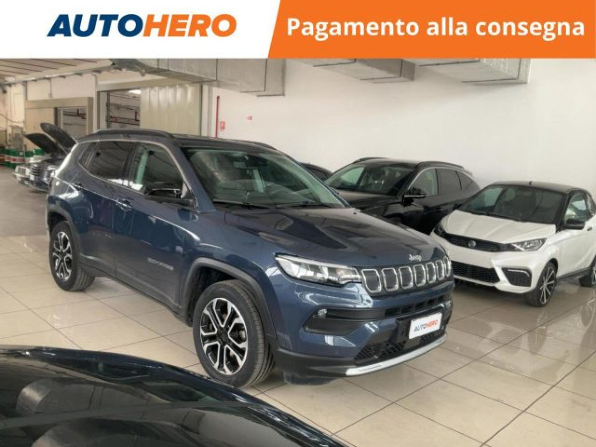 Specchietto retrovisore con funzione ant, Bluetooth, Filtro antiparticolato, Vivavoce, Isofix, Touch screen, MP3, USB, Controllo vocale, Start/Stop Automatico, Sensori di parcheggio anteriori, Telecamera per parcheggio assistito, Sensore di pioggia, Sensore di luce, Sensori di parcheggio posteriori, Specchietti laterali elettrici, Fari LED, Chiusura centralizzata senza chiave, Bracciolo, Adaptive Cruise Control, Airbag testa, Riconoscimento dei segnali stradali, Sedile posteriore sdoppiato, Vetri oscurati, Frenata d\'emergenza assistita, Climatizzatore automatico, 2 zone, Freno di stazionamento elettrico, Apple CarPlay, Android Auto, Schermo multifunzione interamente digita, 360° camera. PAGAMENTO ALLA CONSEGNA, RESO GRATUITO E 1 ANNO DI GARANZIA: SOLO SU AUTOHERO! _________________________________________ SEMPRE INCLUSO: - Pagamento alla consegna, prima vedi poi paghi - Reso gratuito, avrai 21 giorni e 500 km per cambiare idea - Finanziamento flessibile**, personalizzabile senza vincoli - Standard di qualità, veicoli ricondizionati e sanificati - Semplicità nell\'acquisto, gestiamo noi tutte le pratiche - Acquisto sicuro, più di 1000 feedback positivi su Trustpilot - Garanzia 12 mesi inclusa, estendibile fino a 36 mesi _________________________________________ SALIAMO A BORDO! Tra le nostre Jeep Compass, questa si presenta nell allestimento Limited che coi suoi numerosi optional migliorerà la tua esperienza di guida, accompagnandoti a destinazione in tutta serenità. Immatricolata a aprile 2022, si presenta in perfette condizioni. L alimentazione Diesel è ancora la soluzione migliore per gli spostamenti più lunghi e per garantire maggiore vita al tuo motore. Infine, la vita a bordo sarà più facile grazie a Chiusura centralizzata, e . Che aspetti? Visita il nostro sito per scoprire tutti i dettagli e la sua storia! _________________________________________ CONTATTACI SUBITO: - Telefonicamente al numero indicato nell\'annuncio - Tramite mail a clienti@autohero.com - Sul nostro sito www.autohero.com - Offerta N.KX66115 Annuncio completo: https://www.autohero.com/it/Link/id/1d395249-87e8-4ef0-9e9a-5e0942994119/?utm_source=CLA&utm_medium=classifieds&utm_campaign=classifieds_IT.