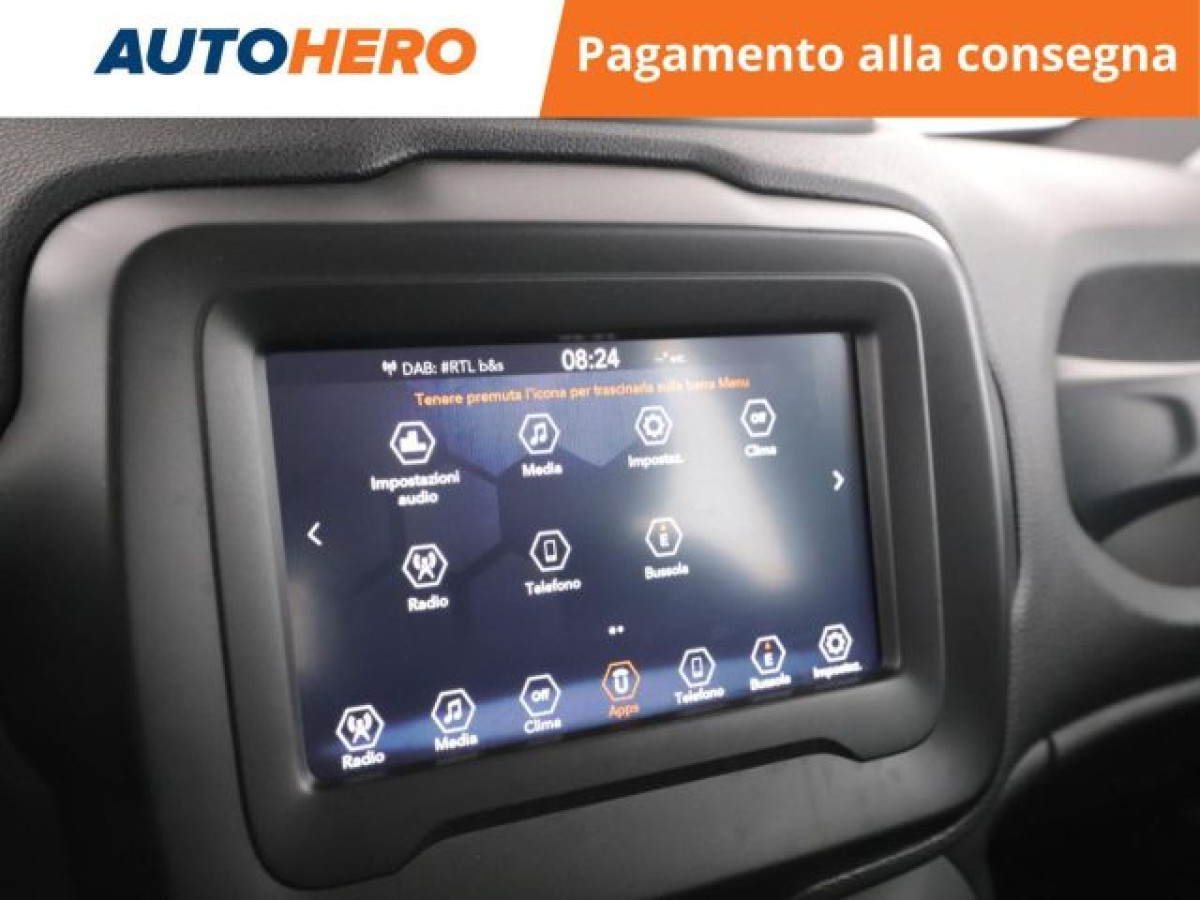 Sound system, Bluetooth, Vivavoce, Touch screen, Specchietti laterali elettrici, Bracciolo, Airbag testa, Controllo elettronico della corsia, Frenata d\'emergenza assistita, Climatizzatore automatico, 2 zone, Freno di stazionamento elettrico, Specchietto retrovisore con funzione ant, Isofix, MP3, USB, Autoradio digitale, Adaptive Cruise Control, Riconoscimento dei segnali stradali, Apple CarPlay, Android Auto. PAGAMENTO ALLA CONSEGNA, RESO GRATUITO E 1 ANNO DI GARANZIA: SOLO SU AUTOHERO! _________________________________________ SEMPRE INCLUSO: - Pagamento alla consegna, prima vedi poi paghi - Reso gratuito, avrai 21 giorni e 500 km per cambiare idea - Finanziamento flessibile**, personalizzabile senza vincoli - Standard di qualità, veicoli ricondizionati e sanificati - Semplicità nell\'acquisto, gestiamo noi tutte le pratiche - Acquisto sicuro, più di 1000 feedback positivi su Trustpilot - Garanzia 12 mesi inclusa, estendibile fino a 36 mesi _________________________________________ SALIAMO A BORDO! Tra le nostre Jeep Renegade, questa si presenta nell allestimento Limited che coi suoi numerosi optional migliorerà la tua esperienza di guida, accompagnandoti a destinazione in tutta serenità. Immatricolata a giugno 2020, si presenta in perfette condizioni. L alimentazione Benzina sarà l ideale per muoversi sia in città che su percorsi più lunghi, senza limitazioni alla circolazione. Infine, la vita a bordo sarà più facile grazie a Alzacristalli elettrici, Autoradio e Chiusura centralizzata. Che aspetti? Visita il nostro sito per scoprire tutti i dettagli e la sua storia! _________________________________________ CONTATTACI SUBITO: - Telefonicamente al numero indicato nell\'annuncio - Tramite mail a clienti@autohero.com - Sul nostro sito www.autohero.com - Offerta N.GM69616 Annuncio completo: https://www.autohero.com/it/Link/id/5bd0058c-9df6-4222-a706-61f921213d6f/?utm_source=CLA&utm_medium=classifieds&utm_campaign=classifieds_IT.