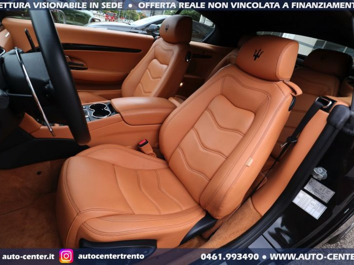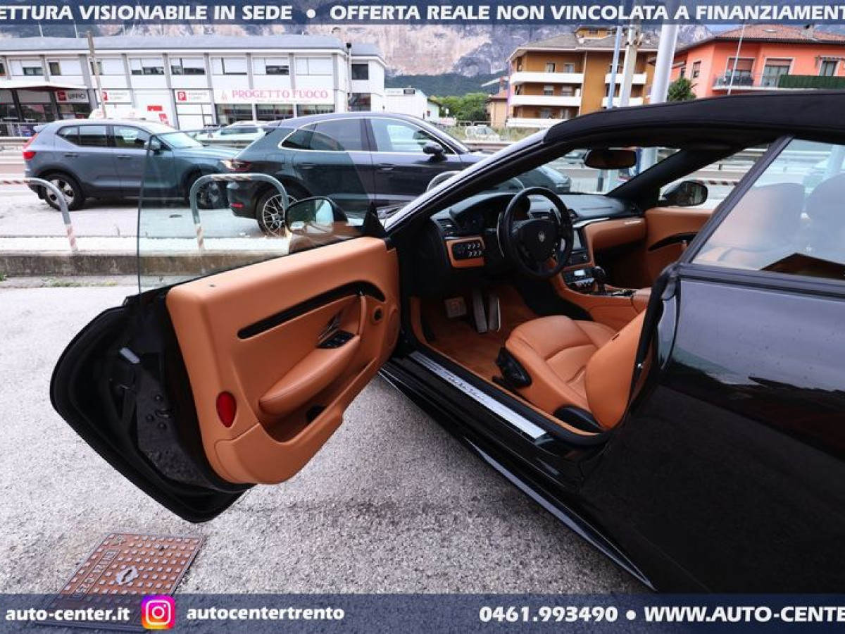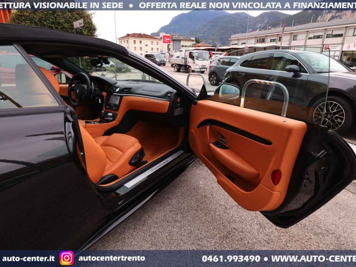 DEK:[[phoneNum:MTAxODU1MTQ=]] DIAMO PRECEDENZA ALLE RICHIESTE COMPLETE DI RECAPITO TELEFONICO Siamo organizzati per trattativa ed acquisto A DISTANZA. Ci potete contattare compilando l\'apposito modulo, via mail, oppure telefonicamente: -- SALONE VENDITE 0461-993490 -- SIMONE [phoneNum:MzQwNjI5Mzc0MA==] -- LUCA [phoneNum:MzQ3NTQ5MDY3MA==] -- Usato di importazione europea in ottime condizioni in pronta consegna. Cronologia Service: 08/2012 preconsegna 06/2014 con 19.115 km 06/2015 con 25.074 km 06/2017 con 36.309 km 07/2019 con 43.447 km 08/2021 con 49.647 km 08/2022 con 50.968 km Ultima revisione: 04/2023 con 51.080 km POSSIBILITA\' FINANZIAMENTO • Riferimento GC-554 • Prima Immatricolazione 08/2012 • Chilometraggio 51.735 KM CERTIFICATI • Garanzia 12 Mesi • Passaggio / IPT non compreso nel prezzo • Valutiamo permute anche di valore superiore (se di nostro interesse) • NON ritiriamo Moto e Auto d’epoca; NON accettiamo offerte al ribasso • PRONTA CONSEGNA IN SEDE A TRENTO • Visionabile da Lunedì a Sabato (Sabato aperti dalle 9.00 alle 13.00) • È gradito l’APPUNTAMENTO MASERATI GRANCABRIO SPORT 4.7 V8 AUT 450CV EURO5 COLORE ESTERNO Nero metallizzato INTERNI Pelle Beige cuciture Nere ALLESTIMENTO INCLUSO • 2 porte • 4 posti • Antifurto • Bluetooth • BOSE sound system • Cambio automatico a 6 marce • Capote elettrica nera • Cerchi in lega • Climatizzatore automatico bi-zona • Cruise control • Disattivazione airbag passeggero • Fari Bi-Xeno adattivi • Fendinebbia • Frangivento • Logo Tridente cucito nei poggiatesta frontali e posteriori • Navigatore satellitare • Pinze freno colorate di Rosso • Retrovisori ripiegabili elettricamente • Sedili anteriori reg. elettricamente • Sensori anteriori posteriori di parcheggio • Telo copri-vettura • Volante regolabile elettricamente Nelle richieste prego specificare PROVINCIA DI RESIDENZA e descrizione dell\'eventuale permuta Questa scheda è compilata con precisione e trasparenza ma non costituisce un impegno contrattuale. Ogni particolare viene verificato e concordato in fase di definizione del contratto. Gli equipaggiamenti di serie possono variare in base alla configurazione finale della vettura e secondo optional extra presenti. I prezzi esposti si intendono IVA inclusa, IPT ESCLUSA PERCHE\' SCEGLIERE UN\'OFFERTA ONLINE AUTO-CENTER • (1) Pubblichiamo solo le MIGLIORI AUTO che acquistiamo o ritiriamo • (2) Le auto sono tutte di NOSTRA PROPRIETA\' • (3) Possibilità di servizio CONSEGNA A DOMICILIO • (4) Ritiriamo usato in PERMUTA (anche di valore superiore) • (5) Assistenza per applicazione LEGGE 104 • (6) Puoi effettuare manutenzioni, tagliandi e interventi in GARANZIA nella tua zona di residenza. Grazie a questo vendiamo IN TUTTA ITALIA • (7) Offriamo FINANZIAMENTI (o LEASING) classici o con maxirata finale, anche con anticipo ridotto (su alcune vetture è possibile anche ZERO ANTICIPO e durata fino ad 84 mesi) •