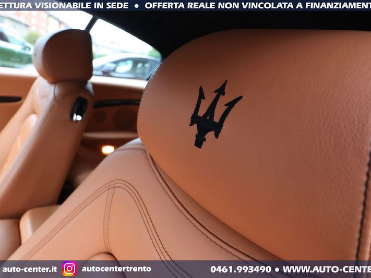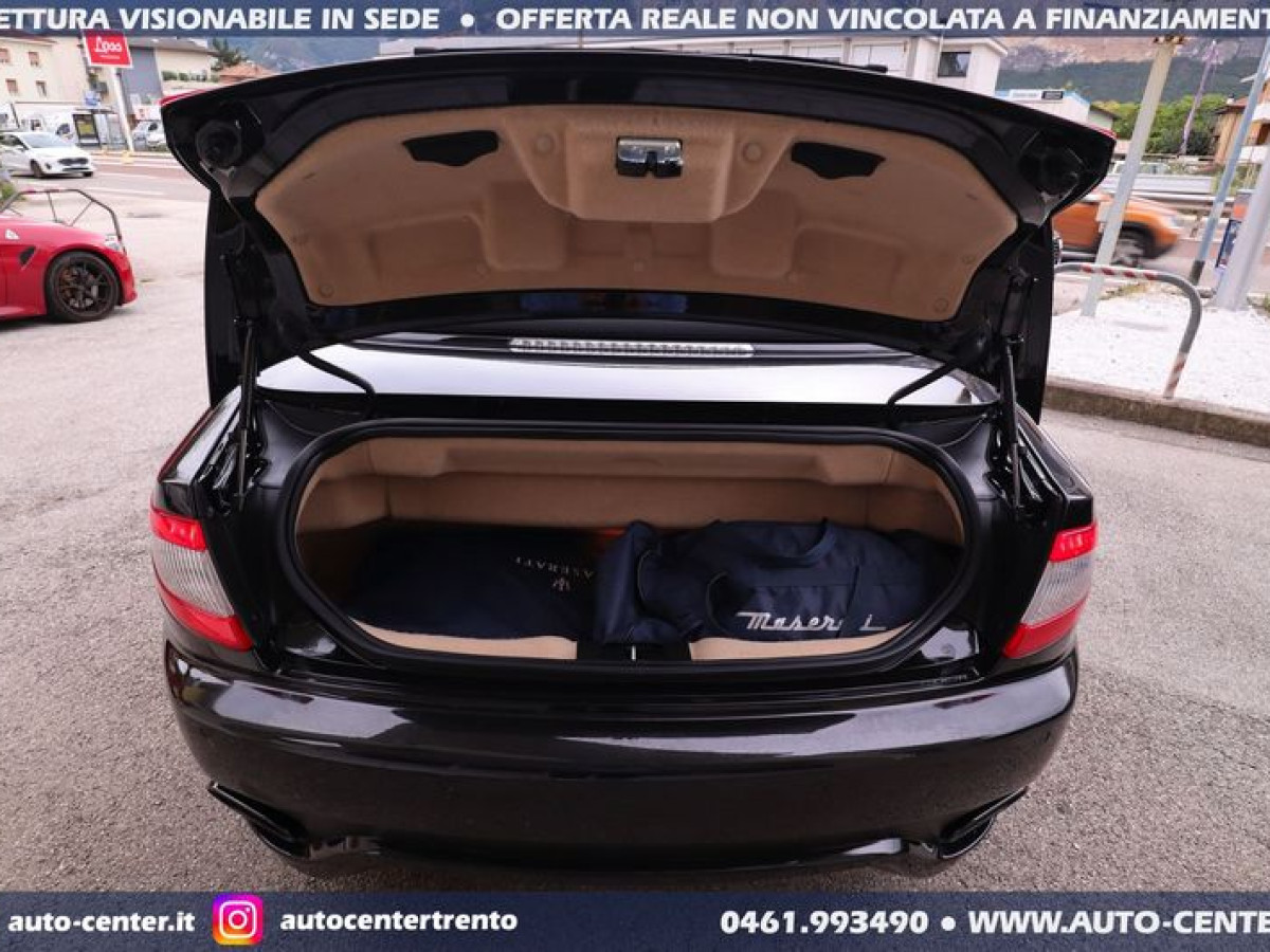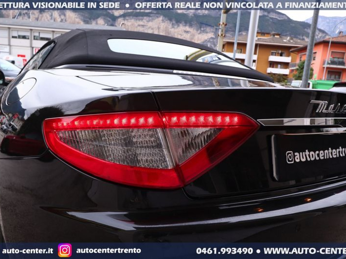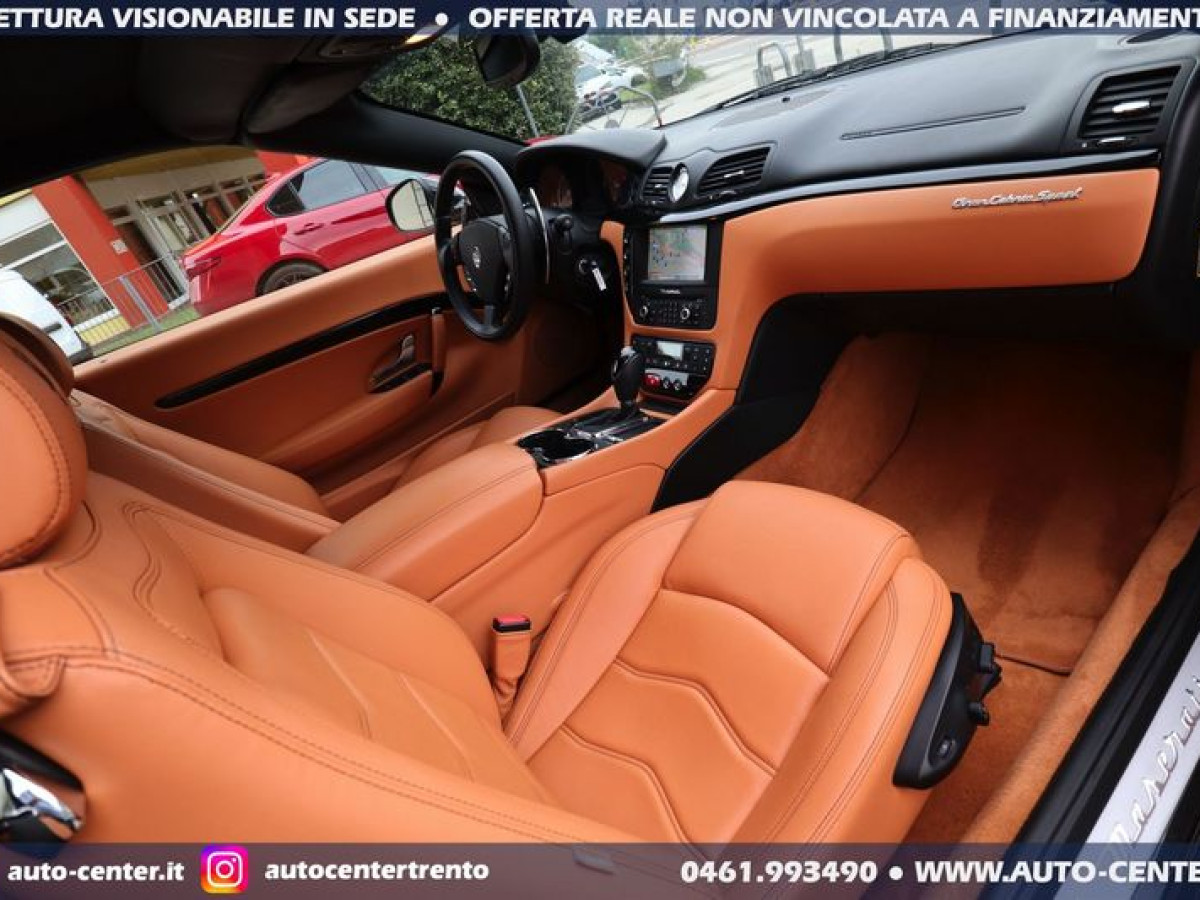 DEK:[[phoneNum:MTAxODU1MTQ=]] DIAMO PRECEDENZA ALLE RICHIESTE COMPLETE DI RECAPITO TELEFONICO Siamo organizzati per trattativa ed acquisto A DISTANZA. Ci potete contattare compilando l\'apposito modulo, via mail, oppure telefonicamente: -- SALONE VENDITE 0461-993490 -- SIMONE [phoneNum:MzQwNjI5Mzc0MA==] -- LUCA [phoneNum:MzQ3NTQ5MDY3MA==] -- Usato di importazione europea in ottime condizioni in pronta consegna. Cronologia Service: 08/2012 preconsegna 06/2014 con 19.115 km 06/2015 con 25.074 km 06/2017 con 36.309 km 07/2019 con 43.447 km 08/2021 con 49.647 km 08/2022 con 50.968 km Ultima revisione: 04/2023 con 51.080 km POSSIBILITA\' FINANZIAMENTO • Riferimento GC-554 • Prima Immatricolazione 08/2012 • Chilometraggio 51.735 KM CERTIFICATI • Garanzia 12 Mesi • Passaggio / IPT non compreso nel prezzo • Valutiamo permute anche di valore superiore (se di nostro interesse) • NON ritiriamo Moto e Auto d’epoca; NON accettiamo offerte al ribasso • PRONTA CONSEGNA IN SEDE A TRENTO • Visionabile da Lunedì a Sabato (Sabato aperti dalle 9.00 alle 13.00) • È gradito l’APPUNTAMENTO MASERATI GRANCABRIO SPORT 4.7 V8 AUT 450CV EURO5 COLORE ESTERNO Nero metallizzato INTERNI Pelle Beige cuciture Nere ALLESTIMENTO INCLUSO • 2 porte • 4 posti • Antifurto • Bluetooth • BOSE sound system • Cambio automatico a 6 marce • Capote elettrica nera • Cerchi in lega • Climatizzatore automatico bi-zona • Cruise control • Disattivazione airbag passeggero • Fari Bi-Xeno adattivi • Fendinebbia • Frangivento • Logo Tridente cucito nei poggiatesta frontali e posteriori • Navigatore satellitare • Pinze freno colorate di Rosso • Retrovisori ripiegabili elettricamente • Sedili anteriori reg. elettricamente • Sensori anteriori posteriori di parcheggio • Telo copri-vettura • Volante regolabile elettricamente Nelle richieste prego specificare PROVINCIA DI RESIDENZA e descrizione dell\'eventuale permuta Questa scheda è compilata con precisione e trasparenza ma non costituisce un impegno contrattuale. Ogni particolare viene verificato e concordato in fase di definizione del contratto. Gli equipaggiamenti di serie possono variare in base alla configurazione finale della vettura e secondo optional extra presenti. I prezzi esposti si intendono IVA inclusa, IPT ESCLUSA PERCHE\' SCEGLIERE UN\'OFFERTA ONLINE AUTO-CENTER • (1) Pubblichiamo solo le MIGLIORI AUTO che acquistiamo o ritiriamo • (2) Le auto sono tutte di NOSTRA PROPRIETA\' • (3) Possibilità di servizio CONSEGNA A DOMICILIO • (4) Ritiriamo usato in PERMUTA (anche di valore superiore) • (5) Assistenza per applicazione LEGGE 104 • (6) Puoi effettuare manutenzioni, tagliandi e interventi in GARANZIA nella tua zona di residenza. Grazie a questo vendiamo IN TUTTA ITALIA • (7) Offriamo FINANZIAMENTI (o LEASING) classici o con maxirata finale, anche con anticipo ridotto (su alcune vetture è possibile anche ZERO ANTICIPO e durata fino ad 84 mesi) •