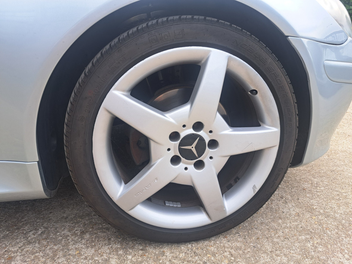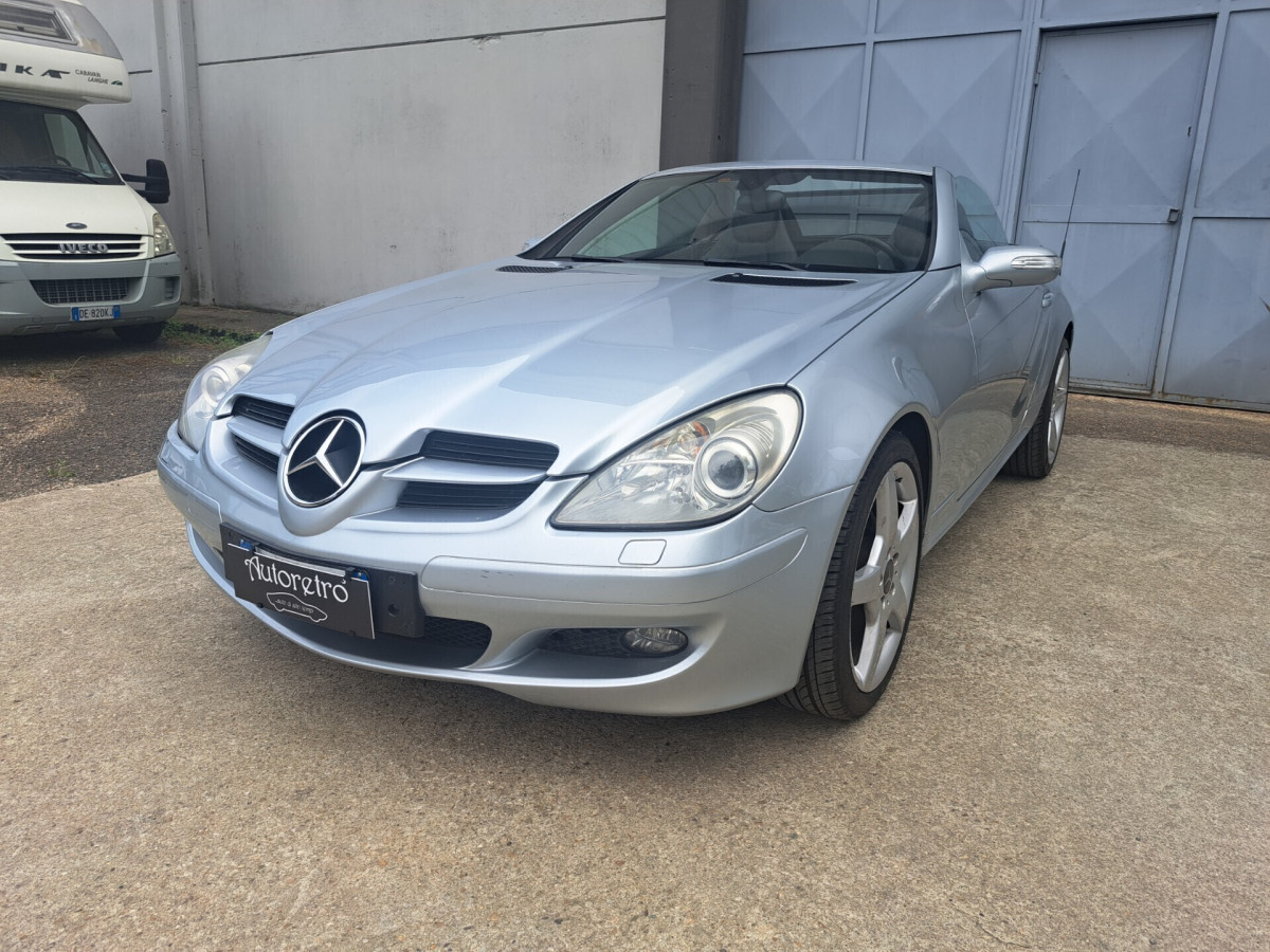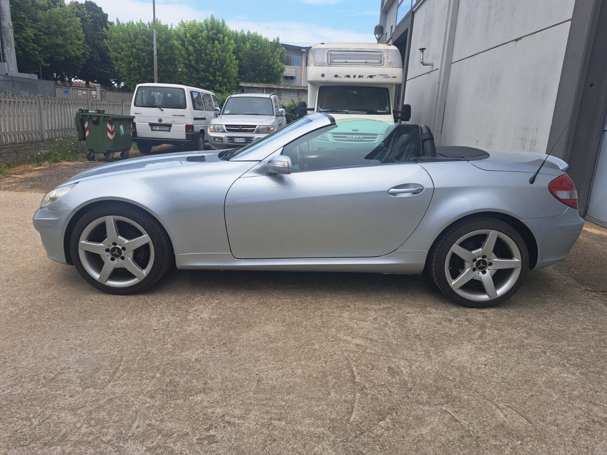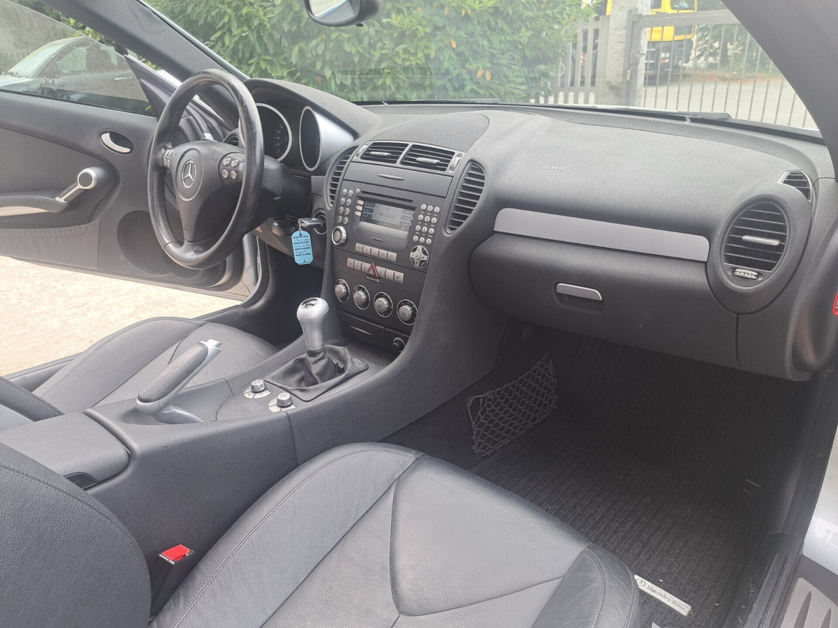 Mercedes SLK R171 200 kompressor 163 cv del 2005 con 168.200 km. Perfettamente funzionante. Carrozzeria ed interni in ottime condizioni. Fari bi-xenon. Volante multifunzione. Cerchi in lega da 18 pollici omologati a libretto. Tutti i vetri sono originali e di primo impianto. Tettino elettrico perfettamente funzionante. Cambio manuale 6 marce. Aria condizionata. Tagliando completo appena effettuato. Nessun lavoro da eseguire.