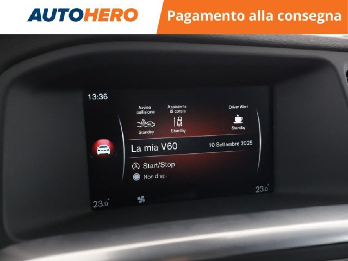 Cruise Control, Start/Stop Automatico, Sensori di parcheggio anteriori, Telecamera per parcheggio assistito, Sensori di parcheggio posteriori, Specchietti laterali elettrici, Airbag testa, Riconoscimento dei segnali stradali, Sedile posteriore sdoppiato, Controllo elettronico della corsia, Frenata d\'emergenza assistita, Climatizzatore automatico, 2 zone, Specchietto retrovisore con funzione ant, Bluetooth, Filtro antiparticolato, Vivavoce, Isofix, MP3, USB, Controllo vocale, Bracciolo. PAGAMENTO ALLA CONSEGNA, RESO GRATUITO E 1 ANNO DI GARANZIA: SOLO SU AUTOHERO! _________________________________________ SEMPRE INCLUSO: - Pagamento alla consegna, prima vedi poi paghi - Reso gratuito, avrai 21 giorni e 500 km per cambiare idea - Finanziamento flessibile**, personalizzabile senza vincoli - Standard di qualità, veicoli ricondizionati e sanificati - Semplicità nell\'acquisto, gestiamo noi tutte le pratiche - Acquisto sicuro, più di 1000 feedback positivi su Trustpilot - Garanzia 12 mesi inclusa, estendibile fino a 36 mesi _________________________________________ SALIAMO A BORDO! Tra le nostre Volvo V60, questa si presenta nell allestimento Dynamic Edition che ti avvolgerà con eleganza tra gli optional top di gamma studiati per farti vivere un’esperienza esclusiva. Immatricolata a novembre 2016, si presenta in perfette condizioni. Nella motorizzazione 2.0 D4 avrai tutta la potenza necessaria per affrontare ogni situazione. L alimentazione Diesel è ancora la soluzione migliore per gli spostamenti più lunghi e per garantire maggiore vita al tuo motore, grazie anche al cambio automatico. Infine, la vita a bordo sarà più facile grazie a Chiusura centralizzata, e . Che aspetti? Visita il nostro sito per scoprire tutti i dettagli e la sua storia! _________________________________________ CONTATTACI SUBITO: - Telefonicamente al numero indicato nell\'annuncio - Tramite mail a clienti@autohero.com - Sul nostro sito www.autohero.com - Offerta N.LZ64703 Annuncio completo: https://www.autohero.com/it/Link/id/0aab7685-2c95-48cb-aae0-974cc832e165/?utm_source=CLA&utm_medium=classifieds&utm_campaign=classifieds_IT.