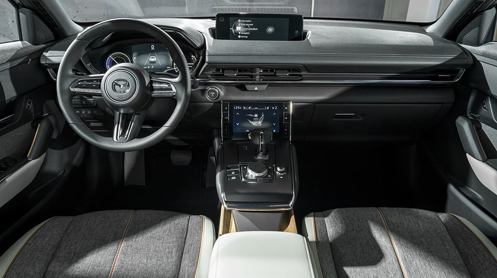 Al suo interno MX-30 impiega innovative soluzioni tecnologiche per creare un abitacolo confortevole, spazioso in grado di restituire la sensazione di essere “uniti dallo spazio”, seguendo la filosofia Mazda che vede l’uomo in completa armonia con la propria auto.