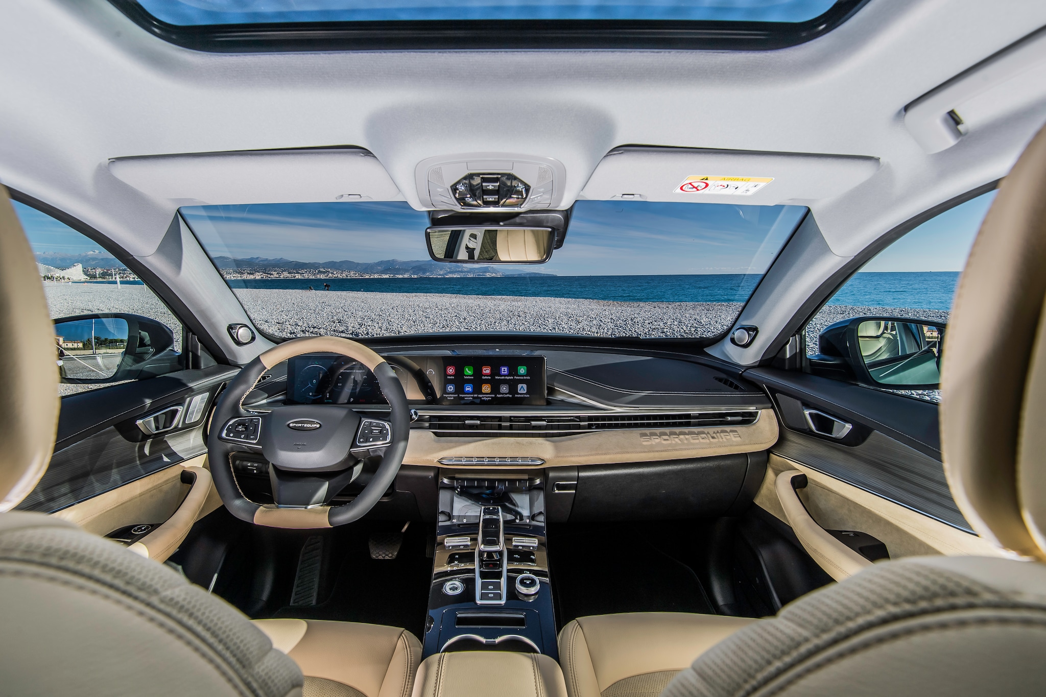 L'abitacolo della Sportequipe 8 è un'oasi di comfort e tecnologia. Con un tetto panoramico, sistema Keyless, telecamere a 360° con parking assistant, ricarica wireless per smartphone e un sistema audio surround, ogni dettaglio è stato progettato per garantire un'esperienza di guida senza pari. Il display infotainment da 26,4", insieme al touch LCD da 9" del climatizzatore bizona con sistema di purificazione dell'aria, permette di gestire tutte le funzioni dell'auto con facilità e precisione.Inoltre, la Sportequipe 8 è dotata di una serie di tecnologie avanzate di assistenza alla guida di secondo livello, tra cui l'adaptive cruise control, il sistema di segnalazione degli angoli ciechi, l'allarme di collisione posteriore e anteriore, la frenata di emergenza, il sistema di assistenza al mantenimento e cambio di corsia molto altro ancora. Queste caratteristiche non solo migliorano la sicurezza, ma rendono anche ogni viaggio più comodo e rilassante per arrivare a destinazione con tutti i comfort.