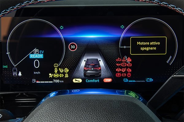 Il pannello digitale, facilmente riconfigurabile con un tasto al volante, è ampio (12,3 pollici) e mette sul piatto un'adeguata quantità d'informazioni in maniera chiaramente leggibile.