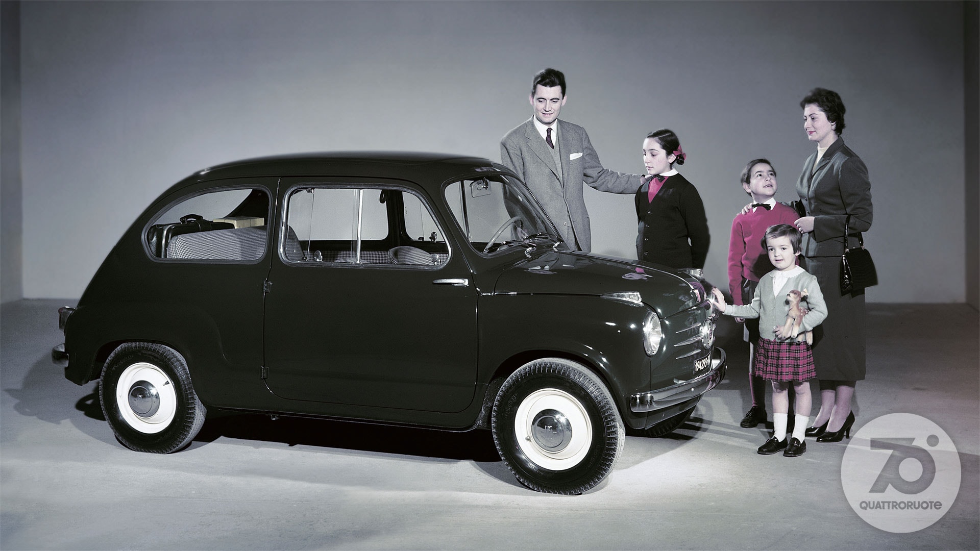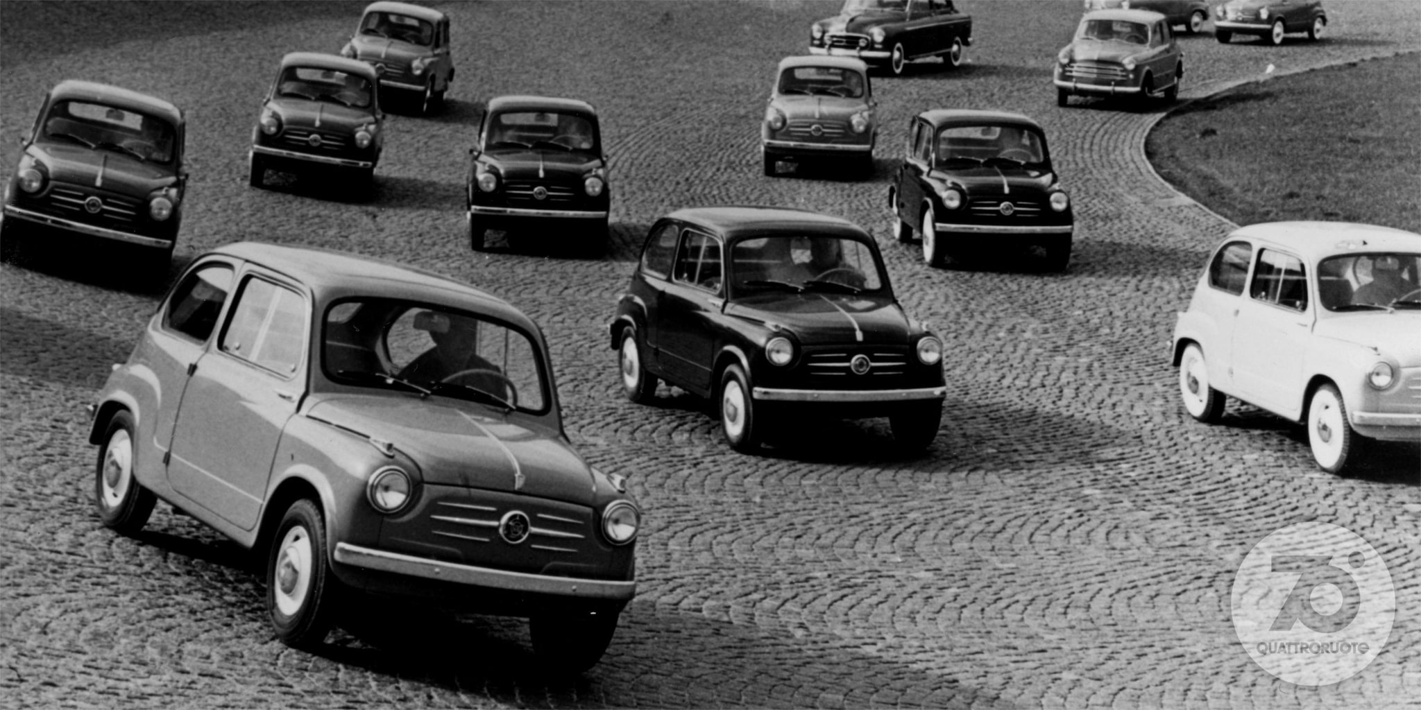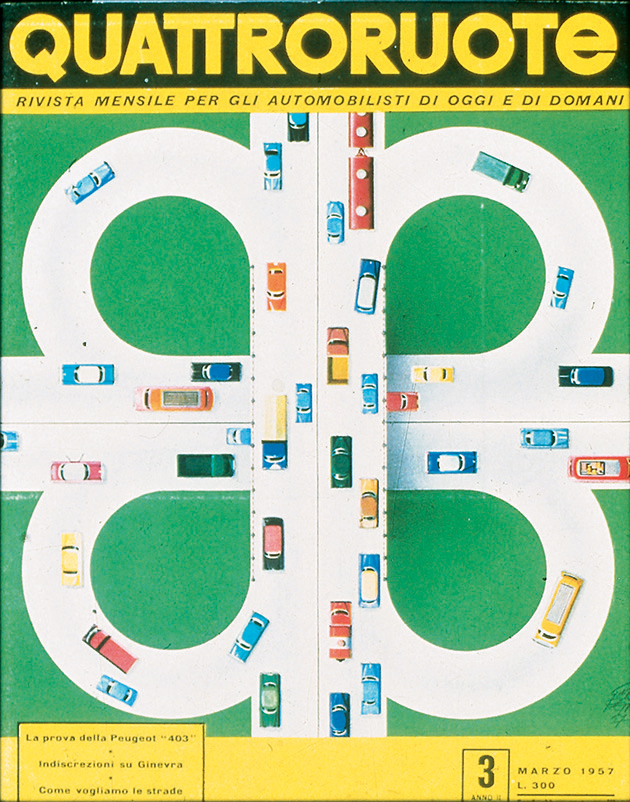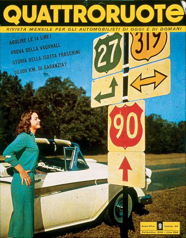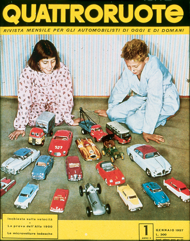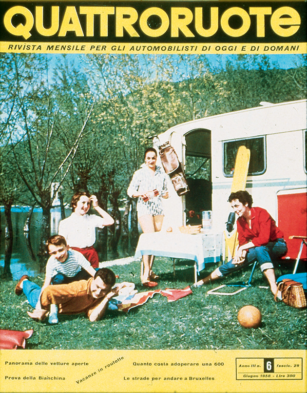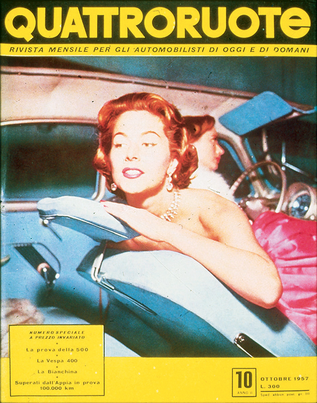 «Tutti potranno dire della Fiat 500: è mia». Così lo spot di “Carosello” del 1957, prima pubblicità televisiva di automobili in Italia, fotografava già un'epoca. In cui la macchina per tutti stava gradualmente diventando una realtà. Nel 1956, l'anno in cui inizia questo viaggio nell'Italia che cambia, le auto circolanti sulle nostre strade sono una manciata sopra il milione. Una soglia psicologica che può suonare storica, se raffrontata alle circa 350 mila che giravano per le strade della nostra Penisola all'inizio degli anni 50, in un Paese che della guerra allora portava ancora suoni, cicatrici e odore sulla pelle. Pochine, però, al confronto dei 41 milioni odierni. Aveva dunque un che di profetico il sottotitolo – “Rivista mensile per gli automobilisti di oggi e di domani” – che dal numero di aprile accompagnava una testata di motori nata a febbraio di quell'anno: Quattroruote. Una visione lungimirante – messa nero su bianco nel primo editoriale («Sta per tramontare l'epoca in cui gli uomini si dividevano in quelli che hanno e quelli che non hanno l'automobile. Tutti, tra pochi anni, avranno l'automobile») – che non solo conferma l'intuito editoriale di Gianni Mazzocchi, già ideatore di testate come L'Europeo (1945) e Il Mondo (1949), ma che presto sarà suggellata dai numeri: 2 milioni di targhe sfiorati appena quattro anni più tardi, nel 1960, 6 milioni superati nel 1966.