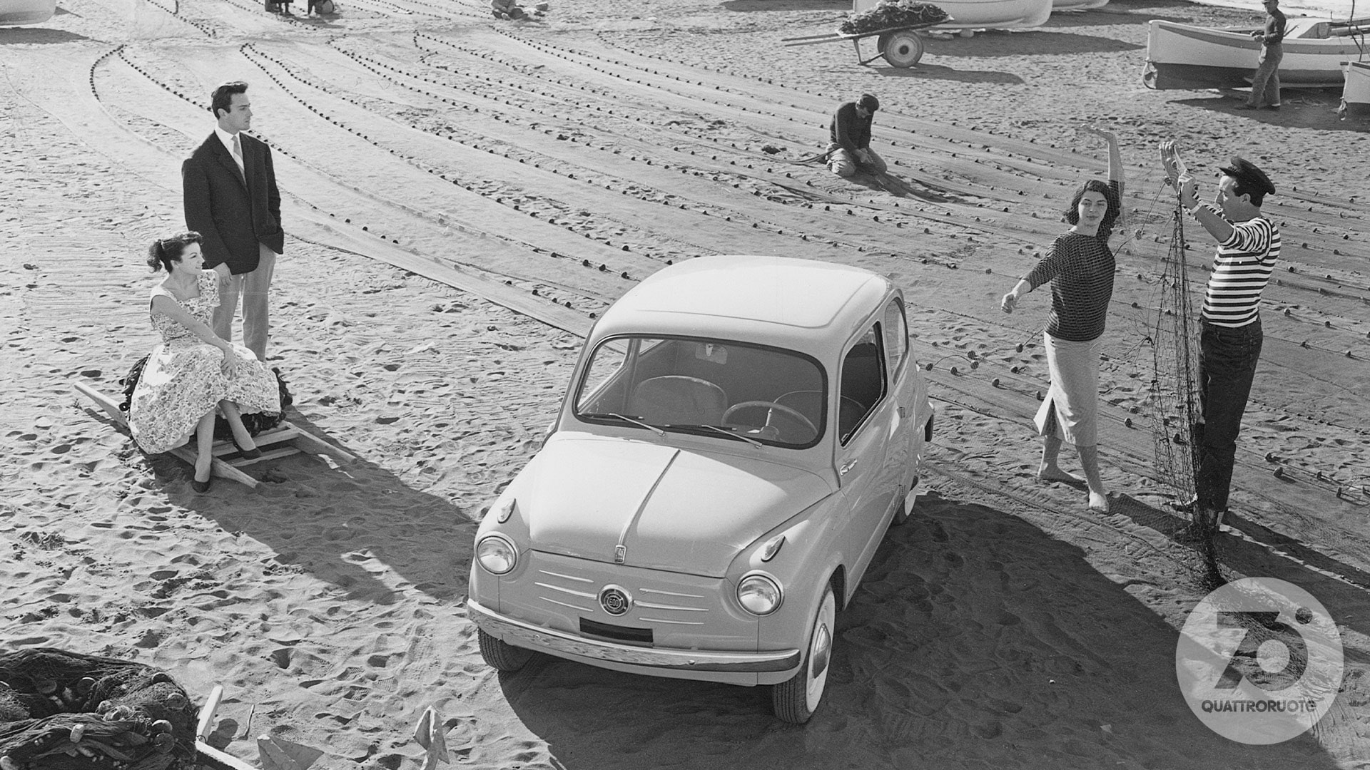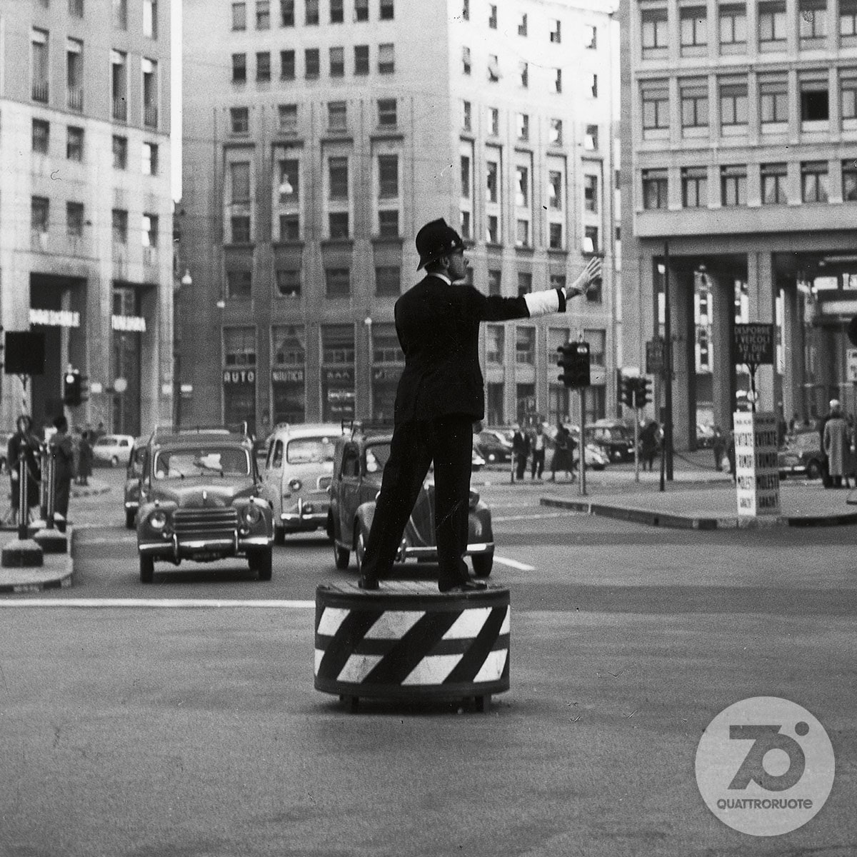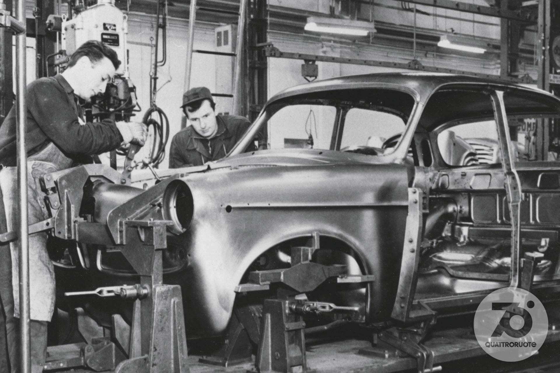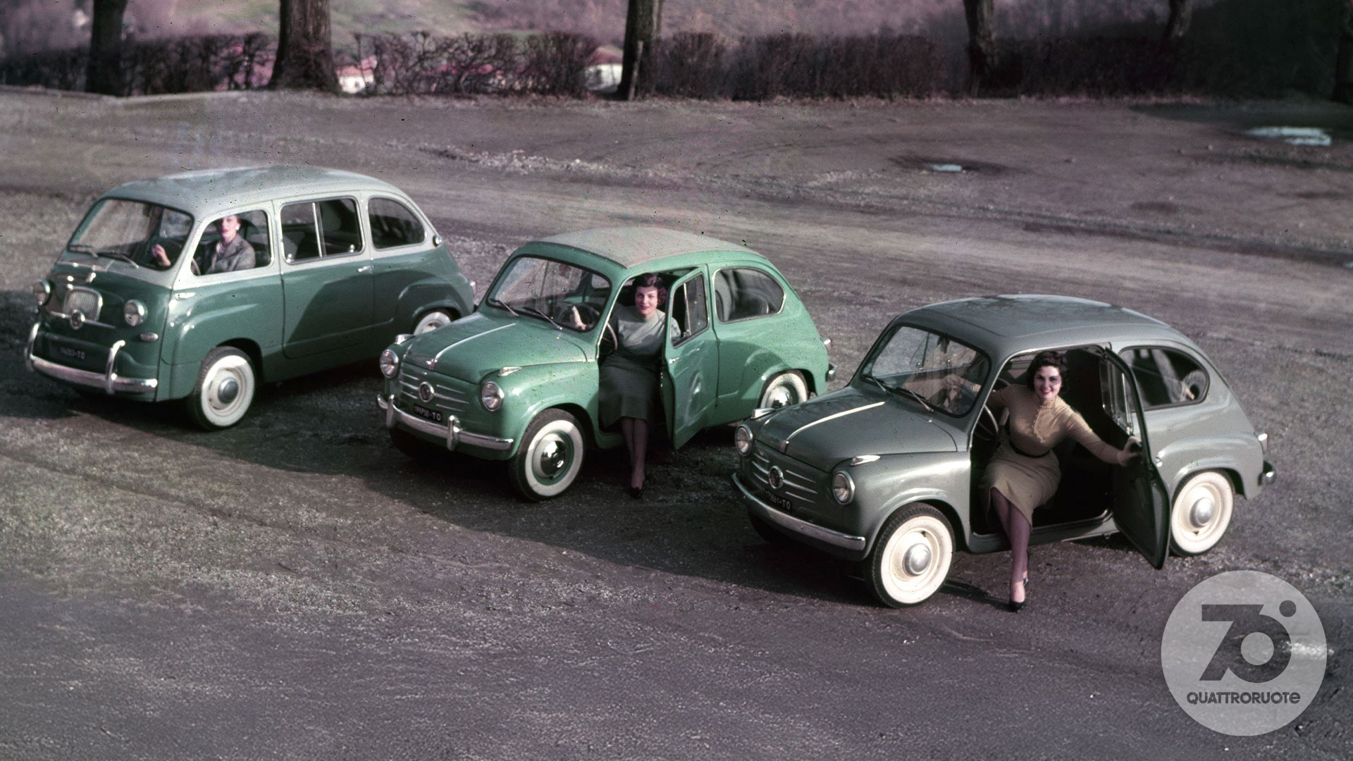 «Tutti potranno dire della Fiat 500: è mia». Così lo spot di “Carosello” del 1957, prima pubblicità televisiva di automobili in Italia, fotografava già un'epoca. In cui la macchina per tutti stava gradualmente diventando una realtà. Nel 1956, l'anno in cui inizia questo viaggio nell'Italia che cambia, le auto circolanti sulle nostre strade sono una manciata sopra il milione. Una soglia psicologica che può suonare storica, se raffrontata alle circa 350 mila che giravano per le strade della nostra Penisola all'inizio degli anni 50, in un Paese che della guerra allora portava ancora suoni, cicatrici e odore sulla pelle. Pochine, però, al confronto dei 41 milioni odierni. Aveva dunque un che di profetico il sottotitolo – “Rivista mensile per gli automobilisti di oggi e di domani” – che dal numero di aprile accompagnava una testata di motori nata a febbraio di quell'anno: Quattroruote. Una visione lungimirante – messa nero su bianco nel primo editoriale («Sta per tramontare l'epoca in cui gli uomini si dividevano in quelli che hanno e quelli che non hanno l'automobile. Tutti, tra pochi anni, avranno l'automobile») – che non solo conferma l'intuito editoriale di Gianni Mazzocchi, già ideatore di testate come L'Europeo (1945) e Il Mondo (1949), ma che presto sarà suggellata dai numeri: 2 milioni di targhe sfiorati appena quattro anni più tardi, nel 1960, 6 milioni superati nel 1966.