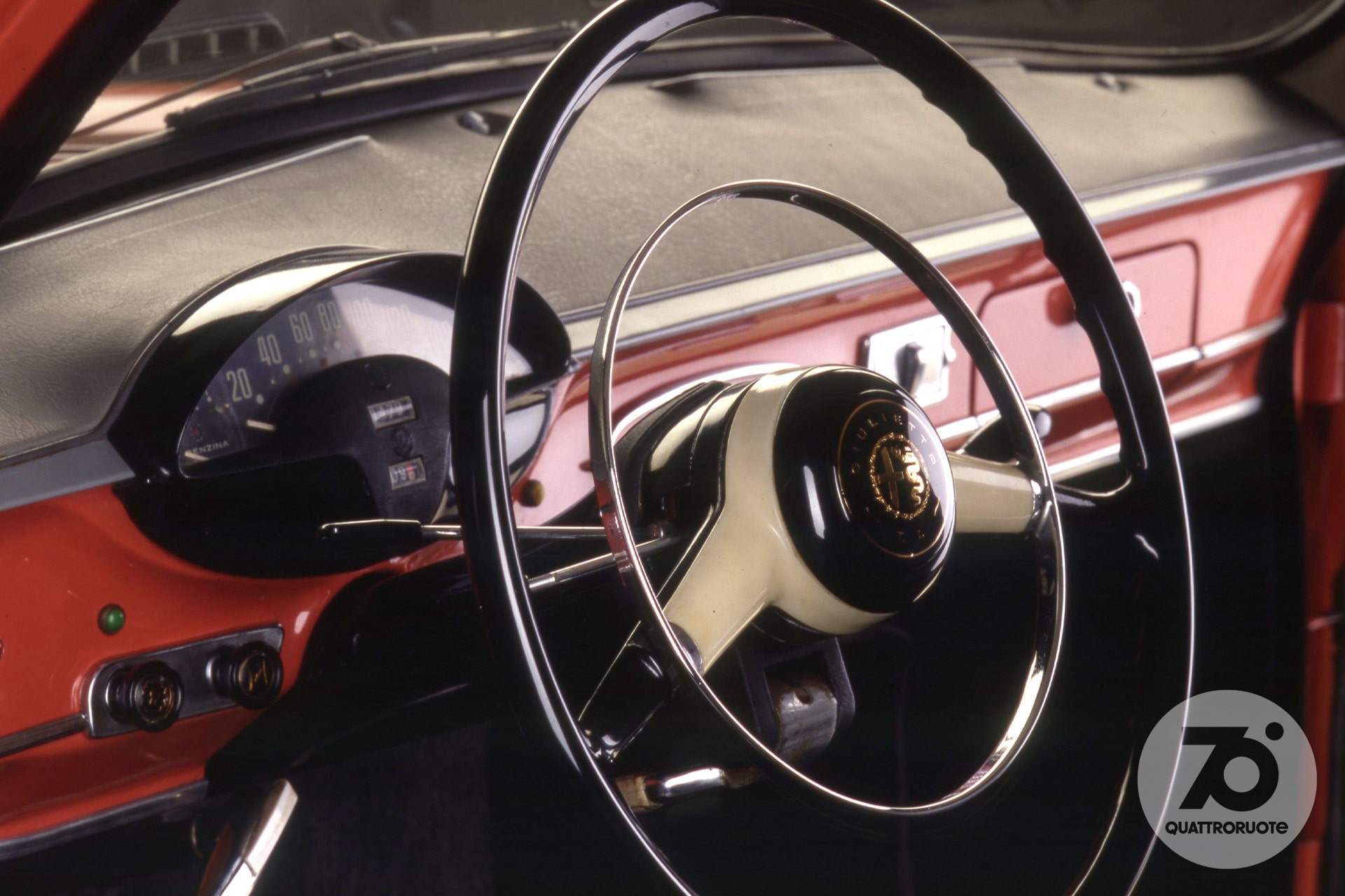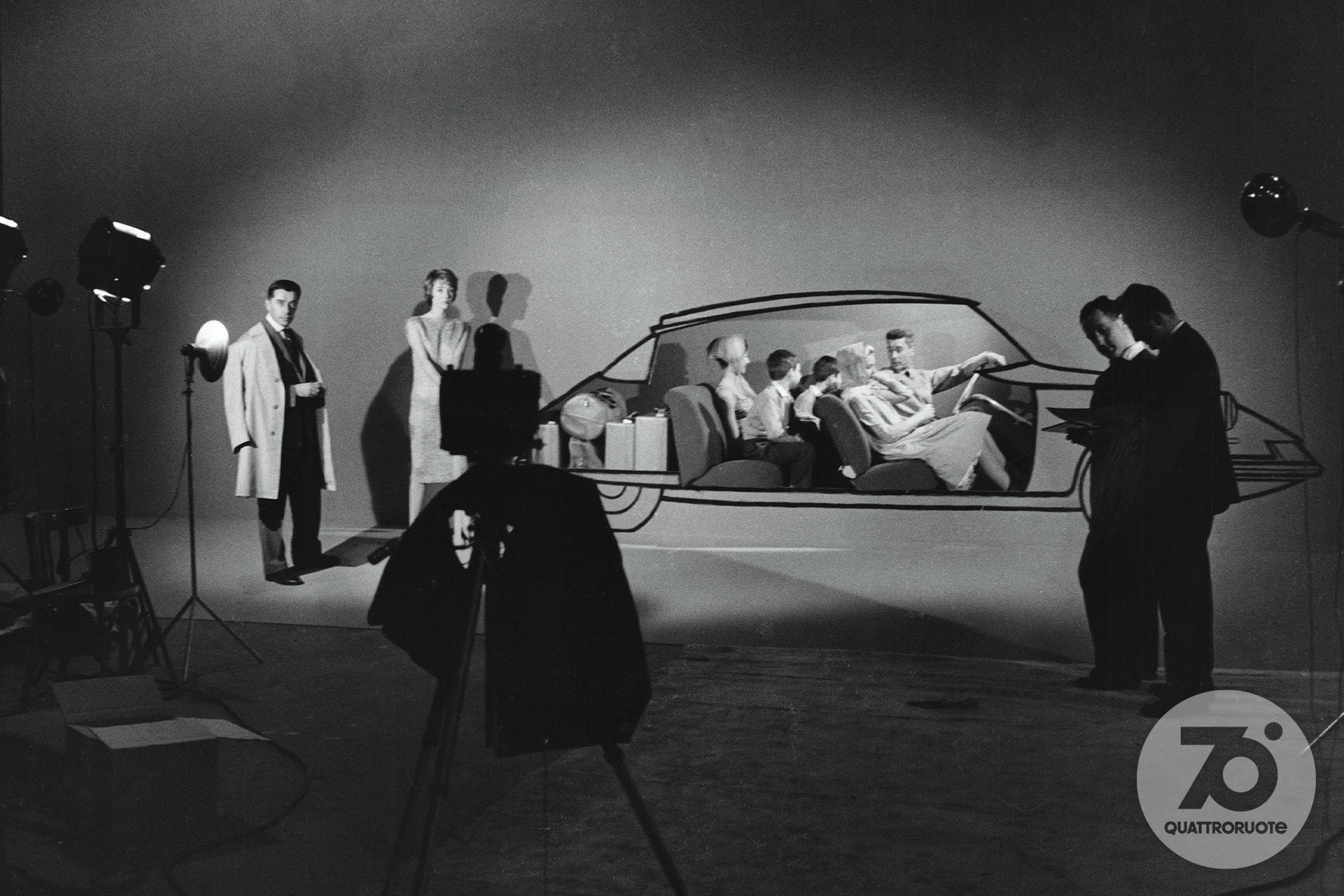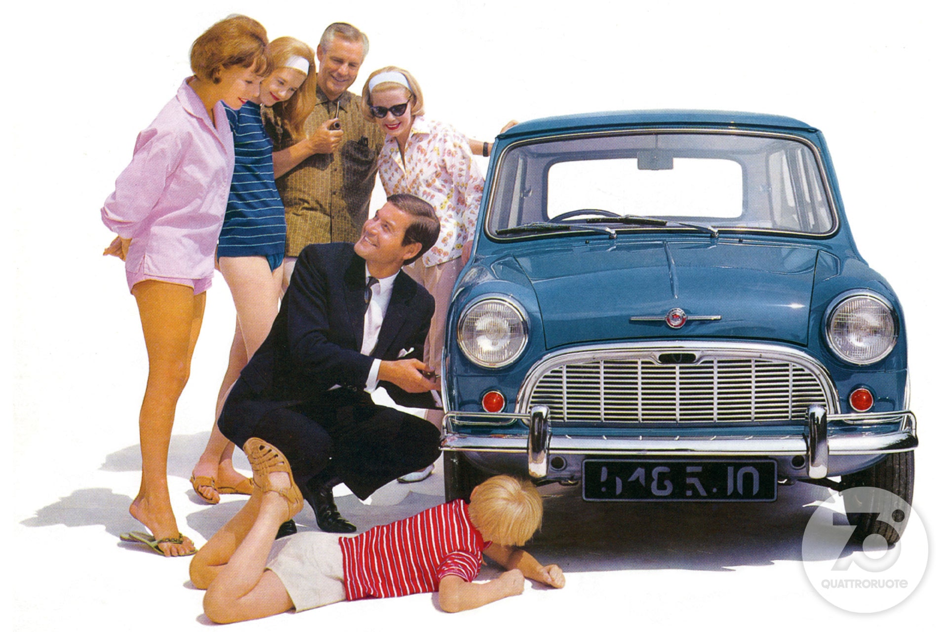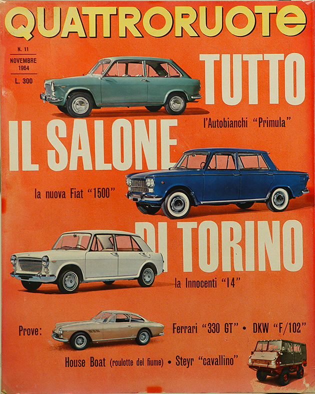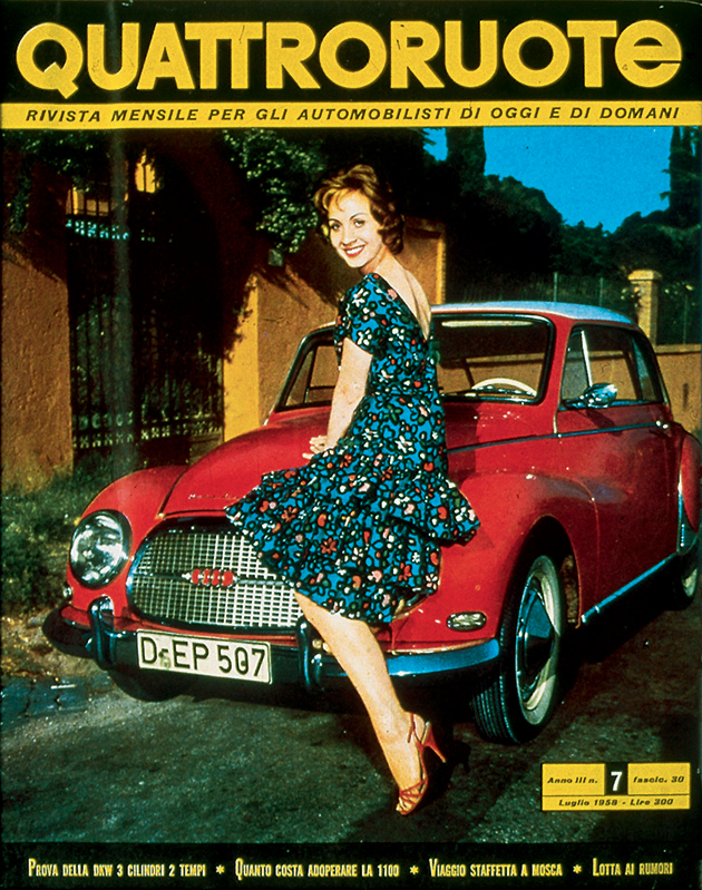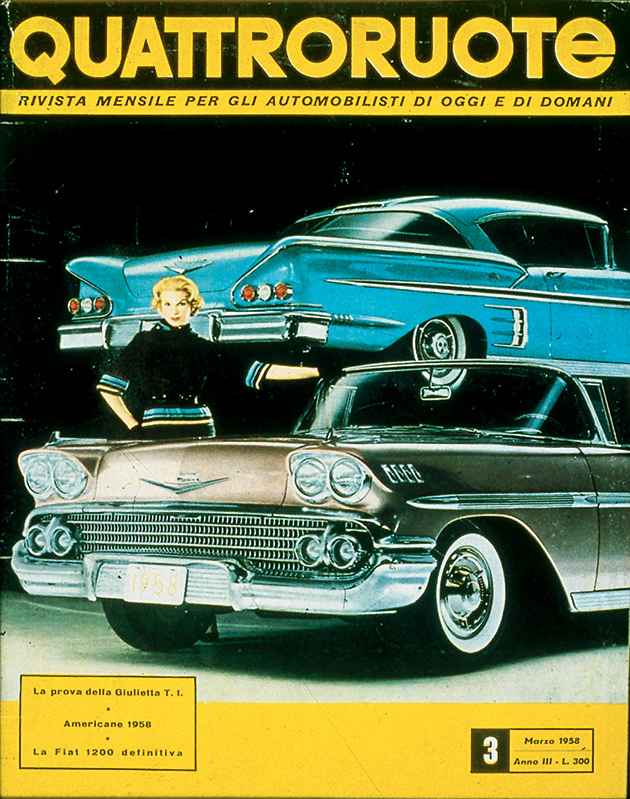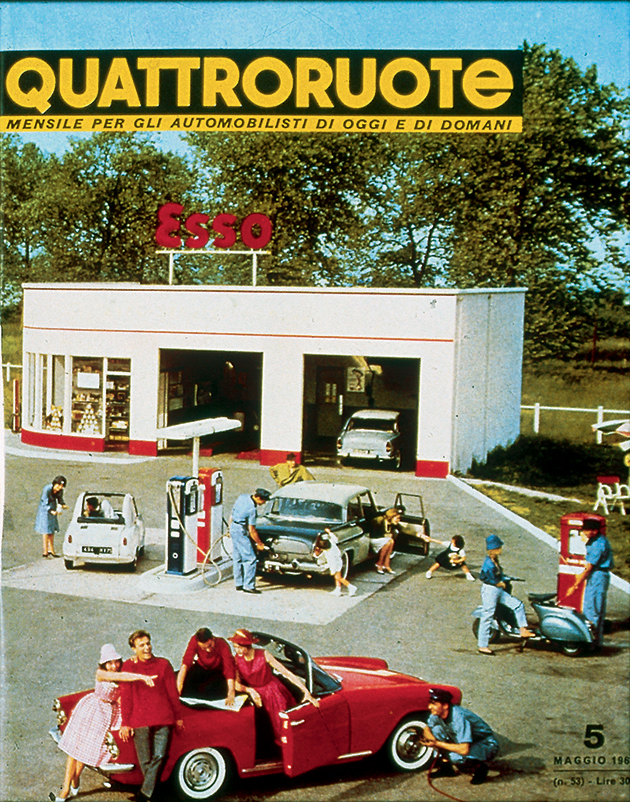 In mezzo, una borghesia, anche piccola, in espansione. Qui c'è spazio per sognare e sempre più per realizzare quei sogni: magari una coupé o una cabriolet, specchio dell'ottimismo di un'era. Per sentirsi come in un film. Nelle sale infatti l'auto diventa protagonista quasi quanto gli attori, che sia la splendida Lancia Aurelia B24 de “Il sorpasso” o la fantasmagorica Aston Martin DB5 di James Bond in “Operazione Goldfinger”. La “dolce vita” è la sublimazione simbolica di un Paese in movimento turbinoso, sulle note dei Beatles e con le gambe sempre più libere di agitarsi sotto quella minigonna che la stilista londinese Mary Quant consacra nel '65 tra le icone dell'epoca. Automobilisticamente, e non solo, potremmo definirla l'età dell'innocenza. Quattroruote a quel punto ha già compiuto dieci anni e vinto tante battaglie, da quella per il bando dei cartelloni pubblicitari dalle strade a quella per la cancellazione della sovrattassa imposta sulla benzina dopo la crisi di Suez del 1956. Un anno più tardi, mentre i Trattati di Roma piantano il seme della futura Unione Europea, i sovietici lanciano i primi due satelliti Sputnik: sul secondo la cagnolina Laika, primo essere vivente in orbita, che anticipa di cinque anni il volo, umano, di Yuri Gagarin. L'era spaziale è cominciata, e avrà riflessi anche sulle automobili. Ma questa è un'altra storia. Che ci proietta in un nuovo decennio.