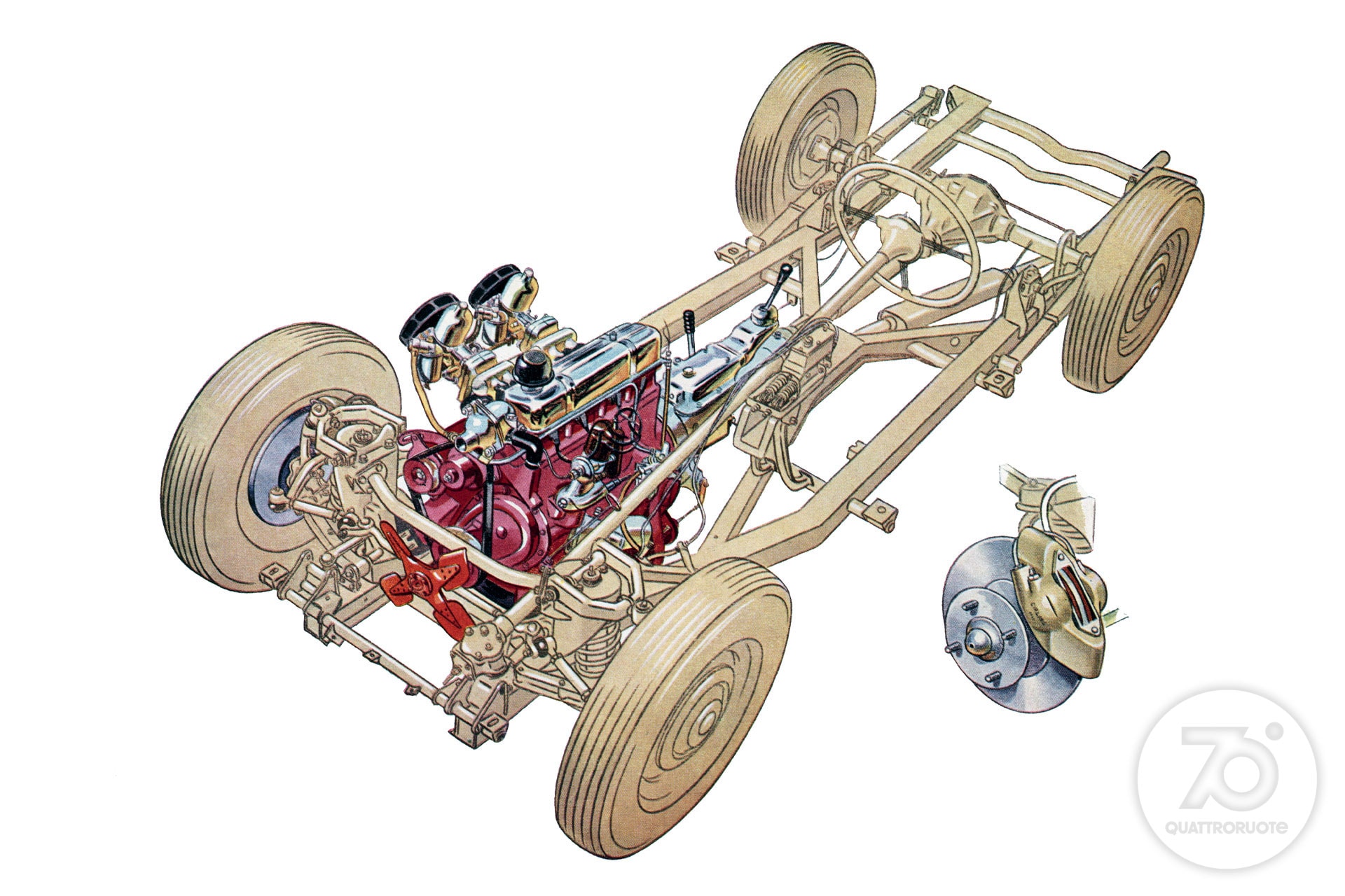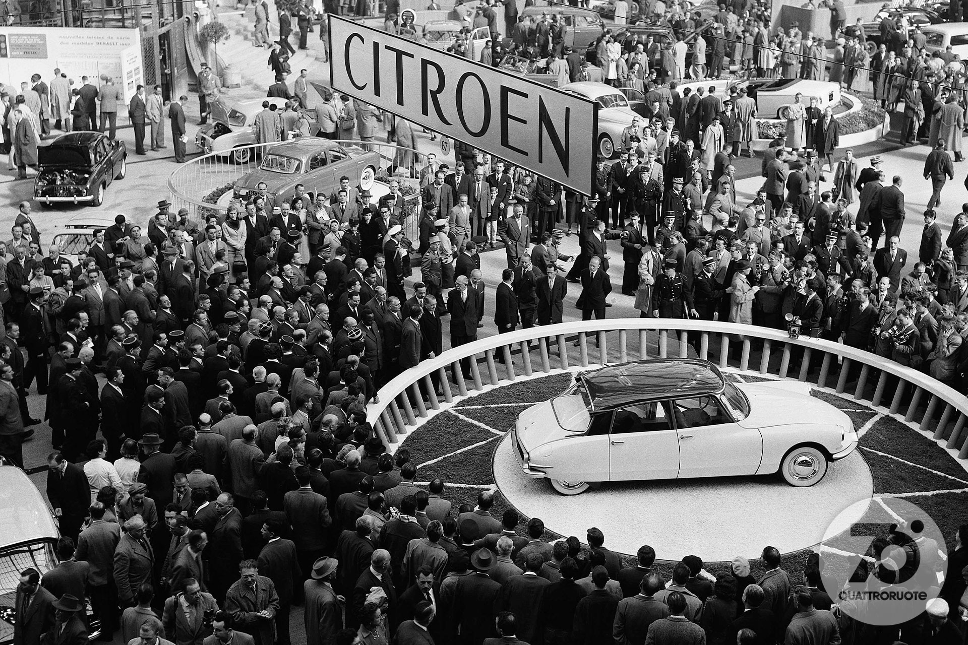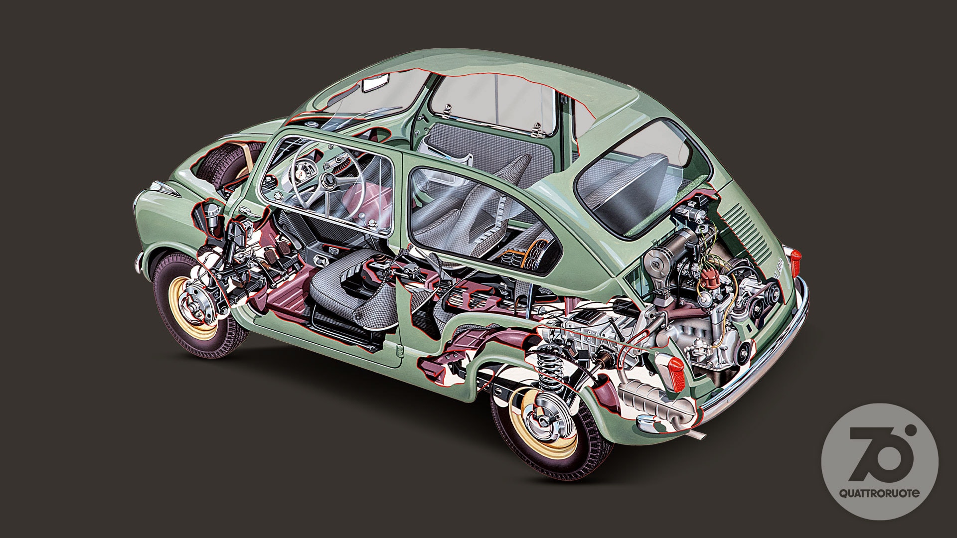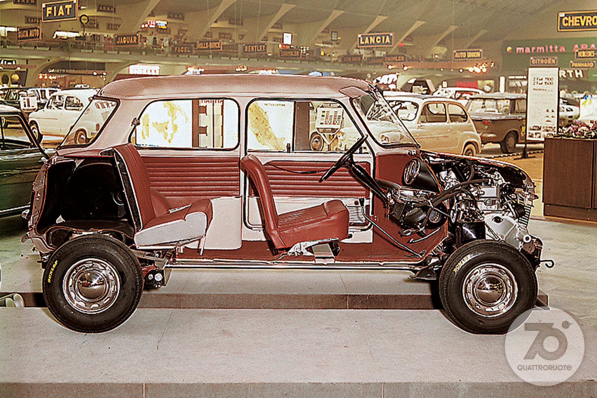 In mezzo, una borghesia, anche piccola, in espansione. Qui c'è spazio per sognare e sempre più per realizzare quei sogni: magari una coupé o una cabriolet, specchio dell'ottimismo di un'era. Per sentirsi come in un film. Nelle sale infatti l'auto diventa protagonista quasi quanto gli attori, che sia la splendida Lancia Aurelia B24 de “Il sorpasso” o la fantasmagorica Aston Martin DB5 di James Bond in “Operazione Goldfinger”. La “dolce vita” è la sublimazione simbolica di un Paese in movimento turbinoso, sulle note dei Beatles e con le gambe sempre più libere di agitarsi sotto quella minigonna che la stilista londinese Mary Quant consacra nel '65 tra le icone dell'epoca. Automobilisticamente, e non solo, potremmo definirla l'età dell'innocenza. Quattroruote a quel punto ha già compiuto dieci anni e vinto tante battaglie, da quella per il bando dei cartelloni pubblicitari dalle strade a quella per la cancellazione della sovrattassa imposta sulla benzina dopo la crisi di Suez del 1956. Un anno più tardi, mentre i Trattati di Roma piantano il seme della futura Unione Europea, i sovietici lanciano i primi due satelliti Sputnik: sul secondo la cagnolina Laika, primo essere vivente in orbita, che anticipa di cinque anni il volo, umano, di Yuri Gagarin. L'era spaziale è cominciata, e avrà riflessi anche sulle automobili. Ma questa è un'altra storia. Che ci proietta in un nuovo decennio.