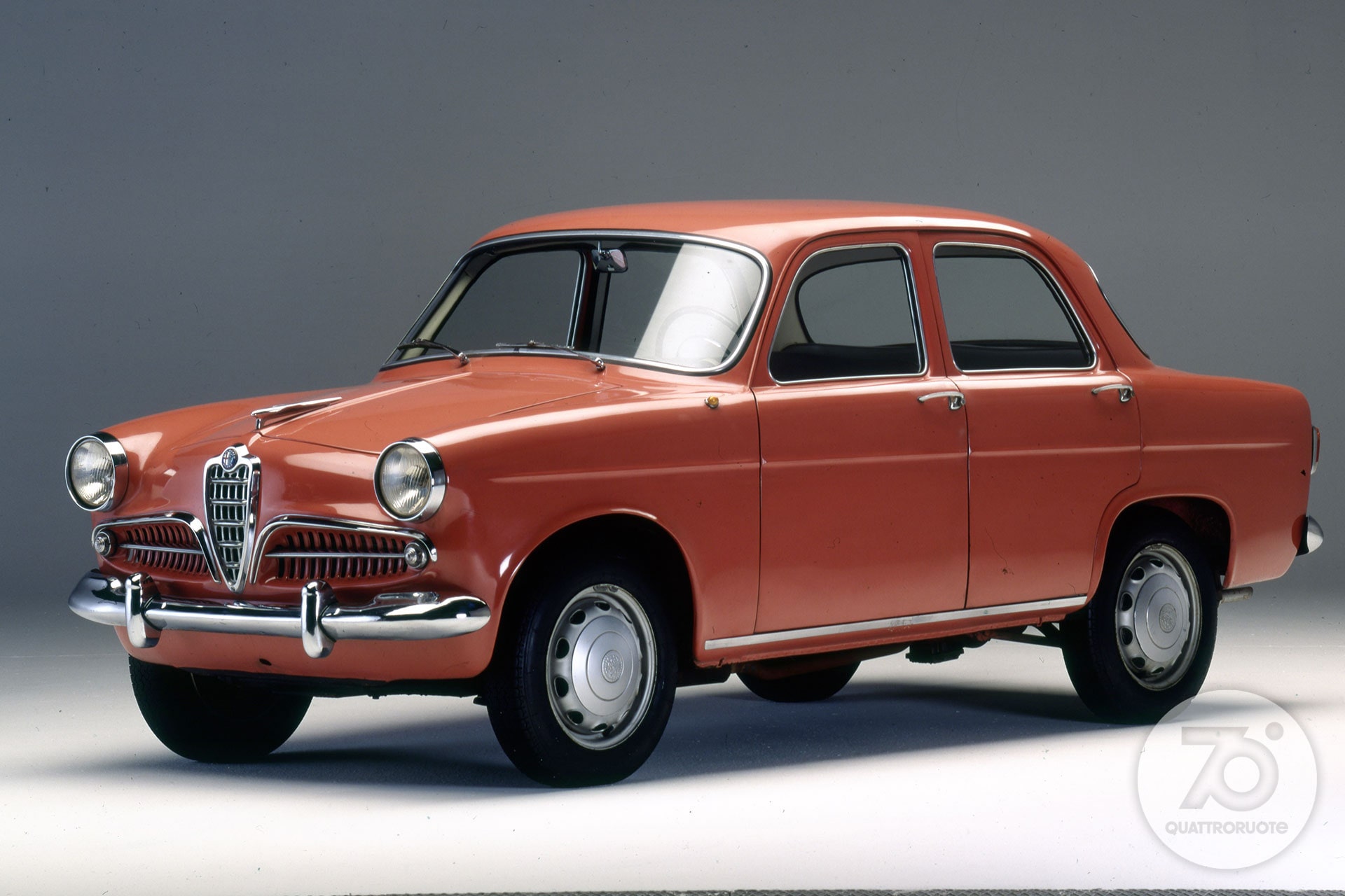 La prima auto del Biscione prodotta con metodi industriali e in volumi rilevanti è il modello che “democratizza” (entro certi limiti) il marchio. Per questo si guadagna il nomignolo di “fidanzata degli italiani”. Costa 1.330.000 lire di allora.